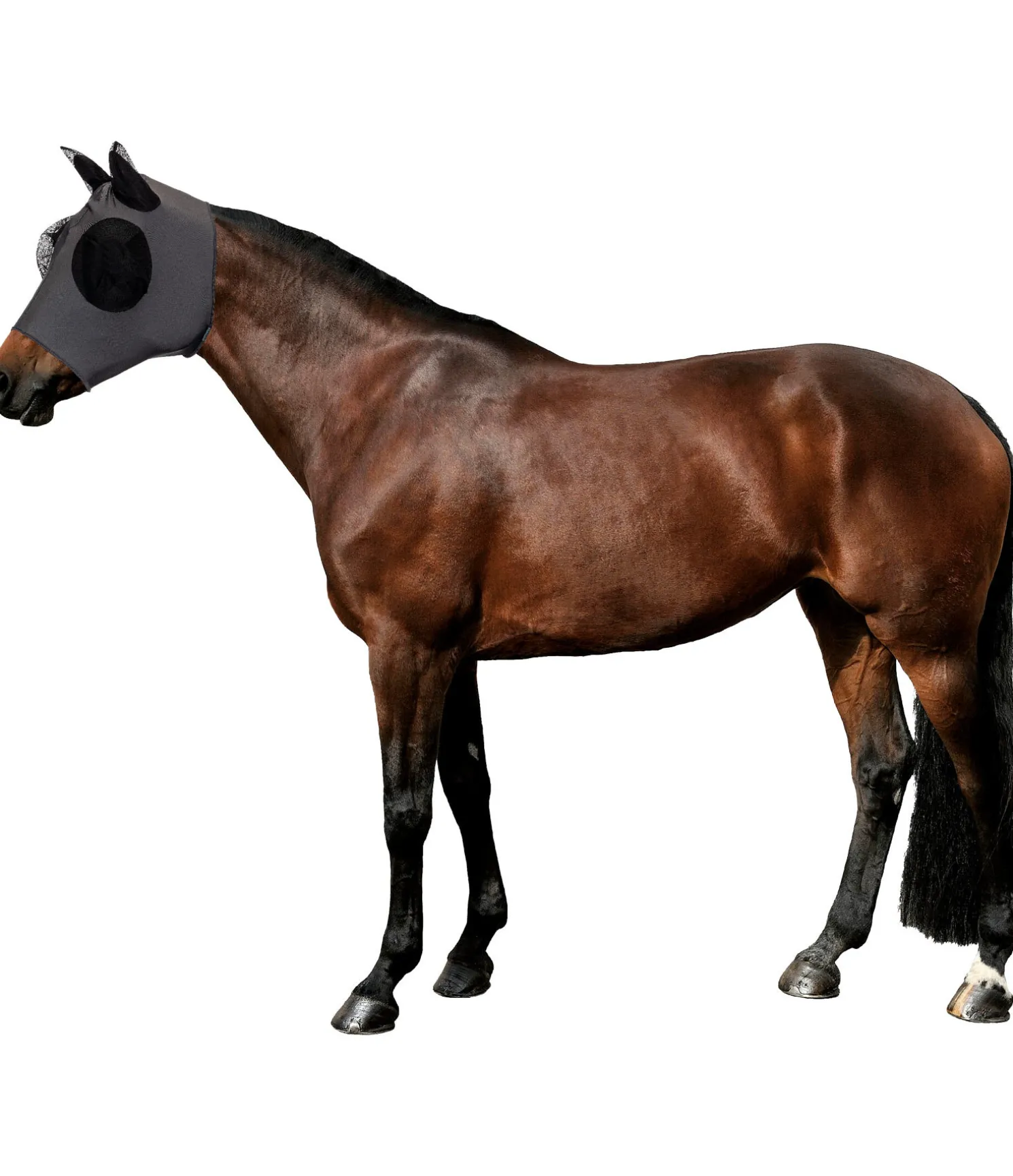 Masque anti-mouches en élasthanne lisse et extensible pour une adaptation parfaite à la tête du cheval. La matière en mailles aux yeux et aux oreilles assure une protection optimale contre les mouches. Grâce à la matière respirante, le cheval transpire moins qu’avec la plupart des autres masques. 85 % polyester, 15 % lycra.