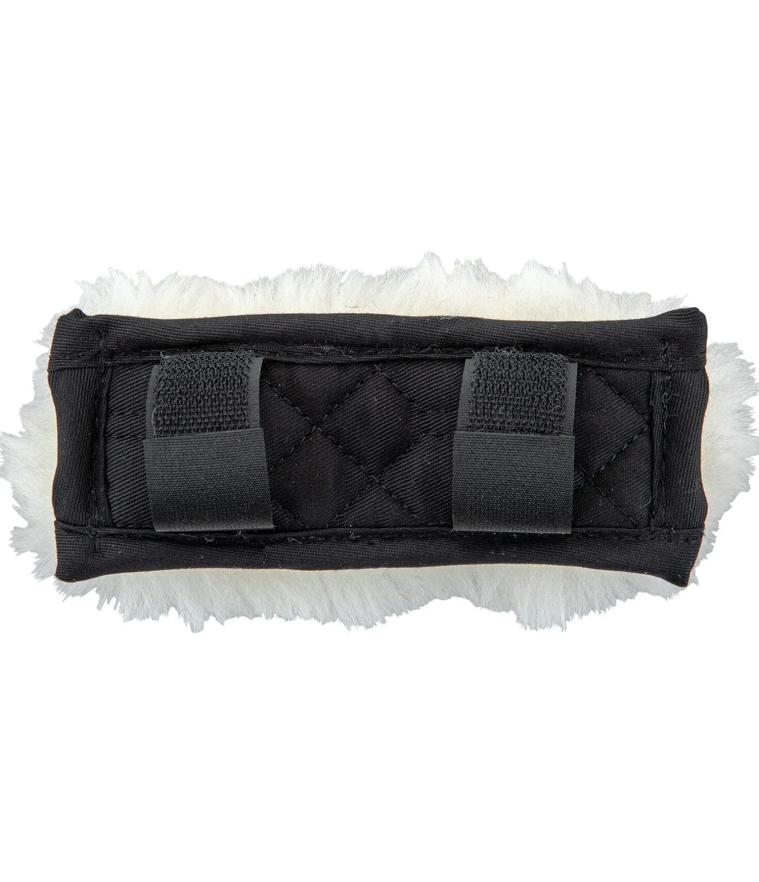 Mentonnière en véritable fourrure d’agneau mérinos pour une protection particulièrement efficace contre les frottements et les points de pression sur cette zone sensible du cheval. Fixation par deux pattes auto-agrippantes.