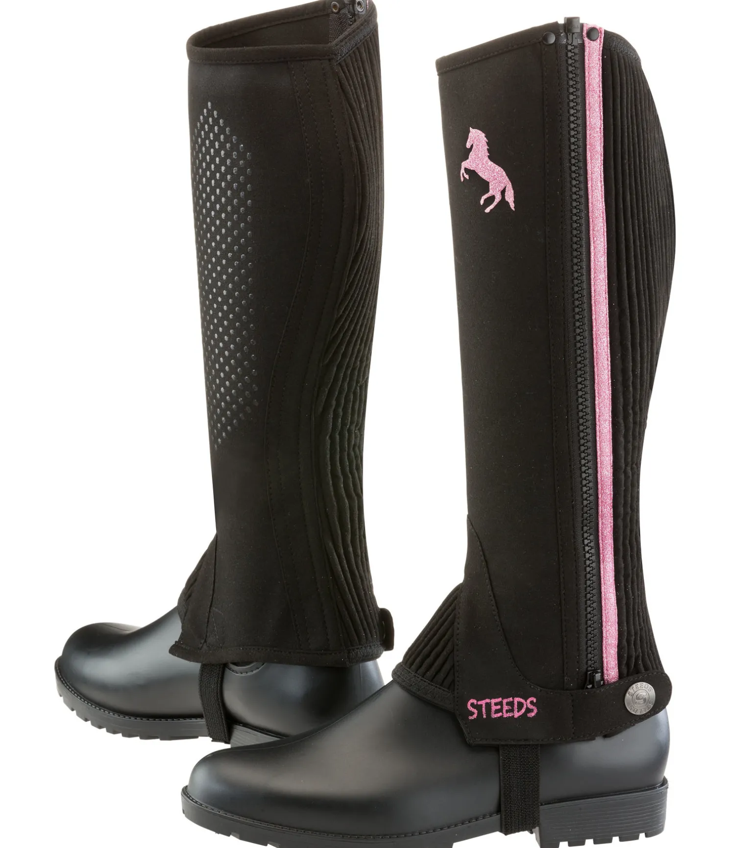 Mini-chaps tendances. Matière synthétique Amara lavable en machine. Détails scintillants de couleur contrastante. Motif imprimé devant. Empiècements extensibles à l’arrière et au cou-de-pied pour une adaptation parfaite au mollet et à la cheville. Fermeture à glissière robuste avec rabat fermé par bouton-pression en bas. Sous-pieds élastiques renforcés.