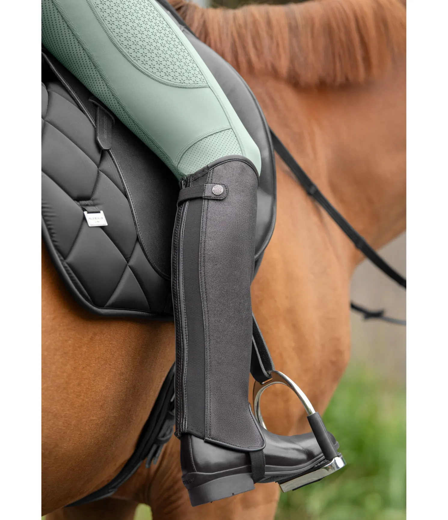 Rien de plus scintillant ! Face avant entièrement recouverte d’un matériau brillant. Intérieur en synthétique résistant à l’abrasion qui assure l’adhérence nécessaire à la selle. L’insert élastiqué le long de la robuste fermeture à glissière YKK située à l’arrière permet un ajustement parfait. Dessus en synthétique souple. Autres caractéristiques : fermeture à bouton-pression et sous-pieds solides.