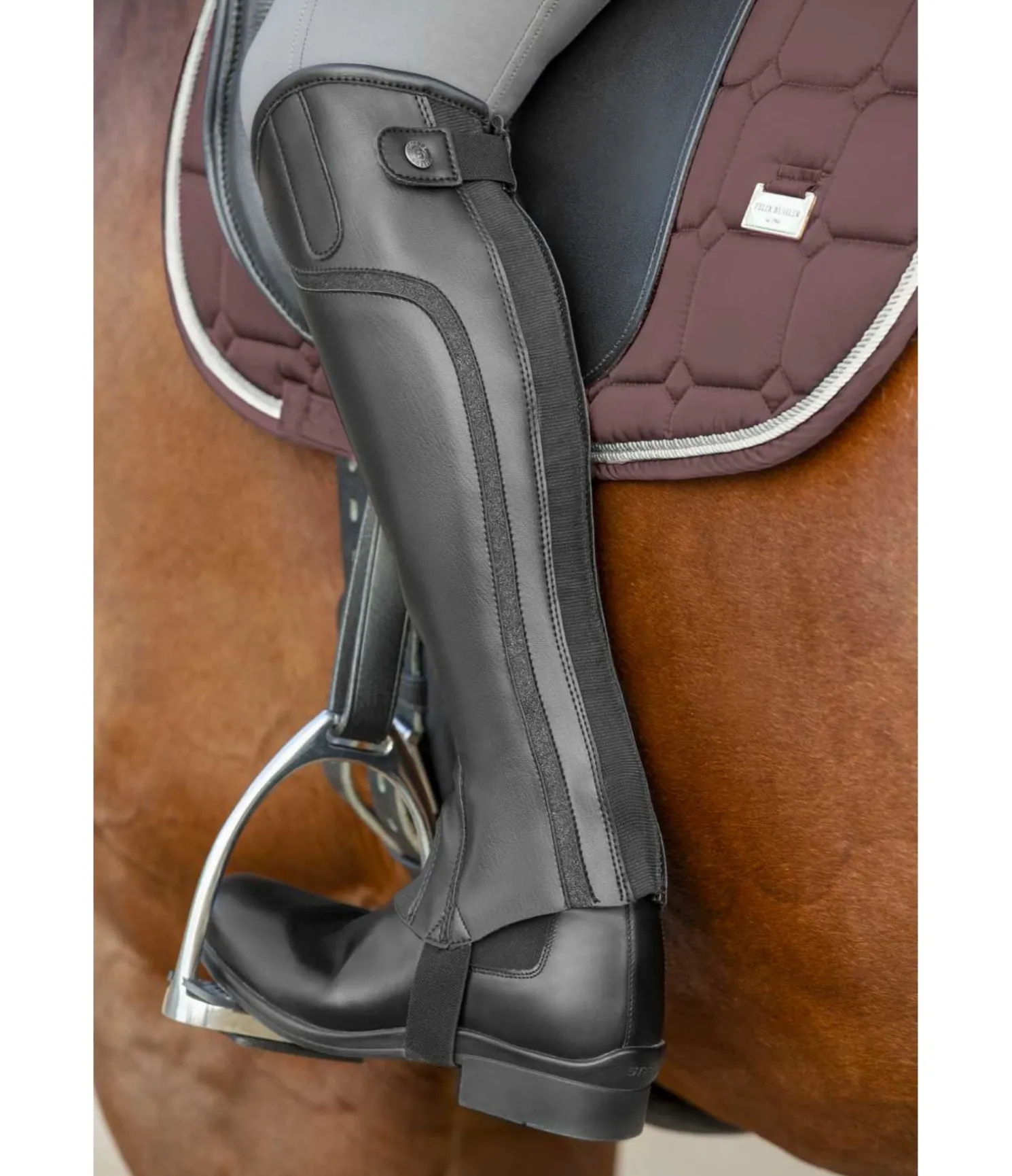 Ces mini-chaps à l’aspect de bottes d’équitation attirent tous les regards grâce à leur ruban scintillant intégré. Leurs points forts sont notamment la coupe parfaite et l’aspect élégant du synthétique. Les empiècements élastiqués le long de la fermeture à glissière YKK robuste à l’arrière assurent un ajustement parfait au mollet.