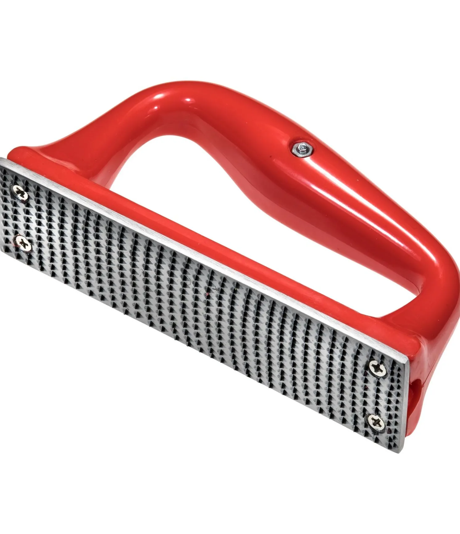 Râpe idéale pour les déplacements. Entre dans n’importe quelle boîte ou sac de pansage. Manche en plastique ergonomique. Râpe métallique 12,5 x 3 cm. Rouge.