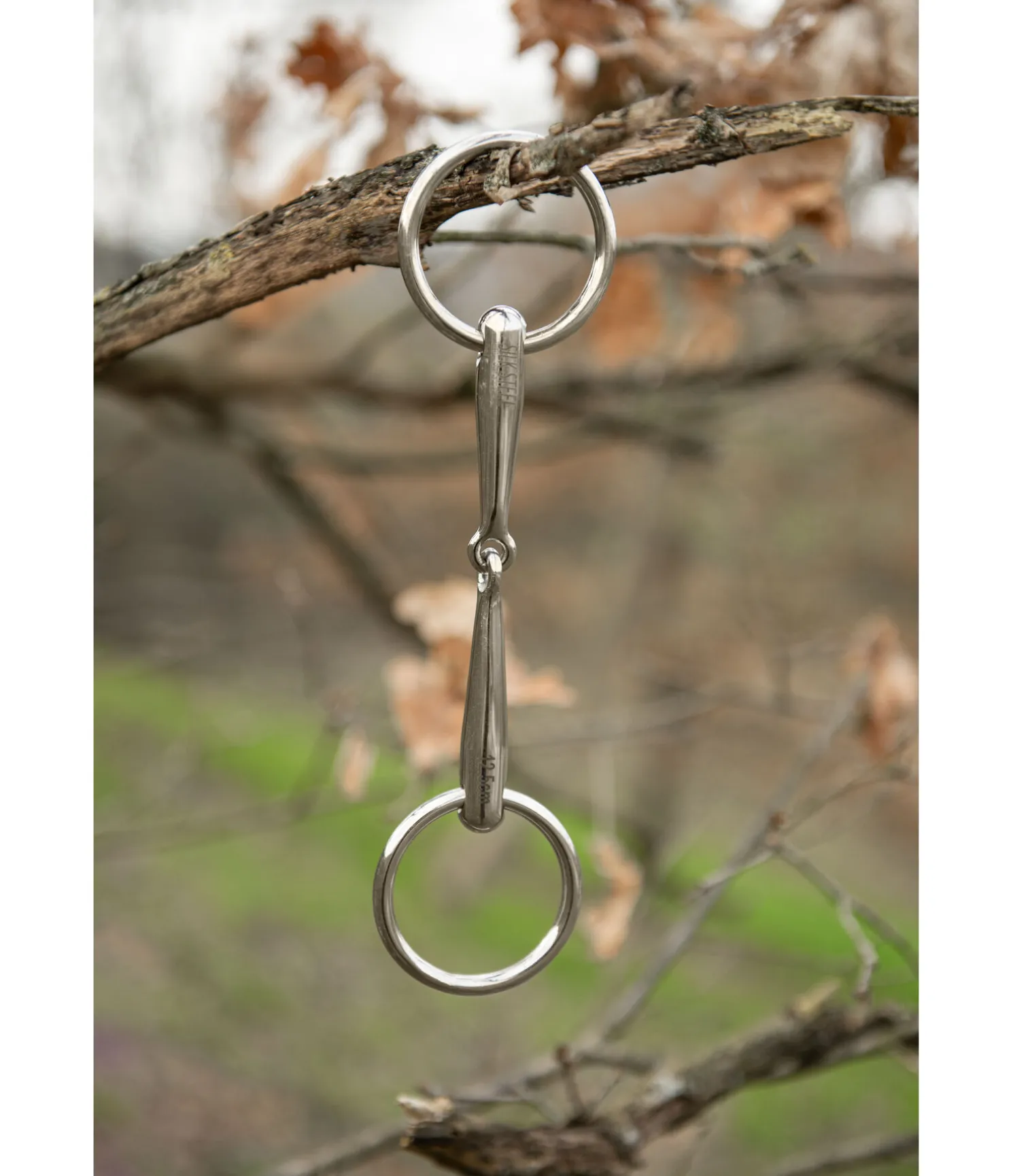 Mors à anneaux simple brisure en acier inoxydable. Épaisseur 12 mm. Diamètre des anneaux : 55 mm.