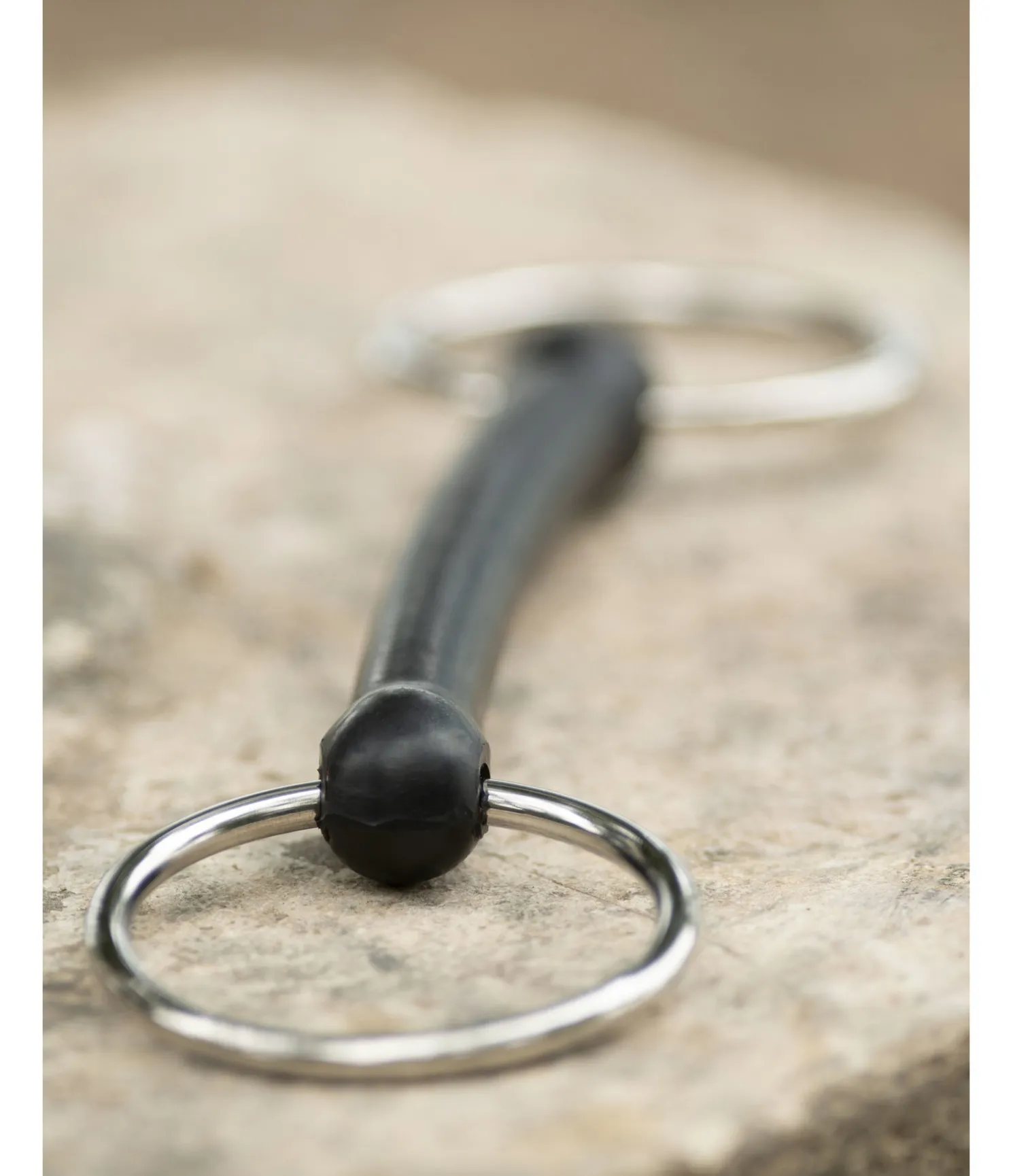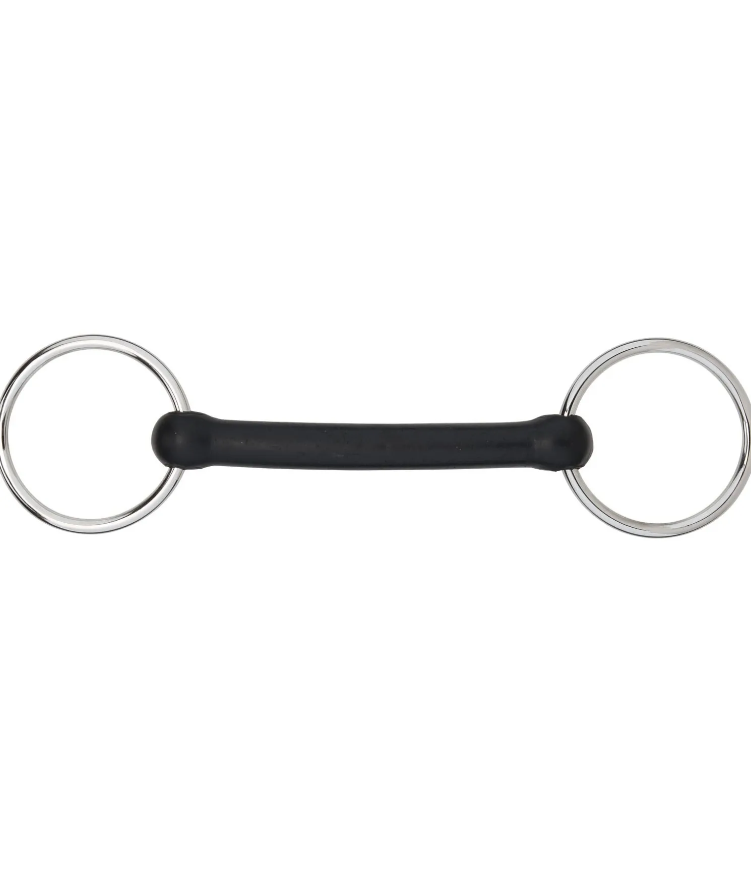 Mors souple en caoutchouc avec âme en acier. Épaisseur des canons 18 mm, diamètre des anneaux 70 mm. Les mors en plastique ou en caoutchouc peuvent s’abîmer en l’espace de quelques minutes, de quelques années ou jamais selon la dentition du cheval et la façon d’attacher le mors.