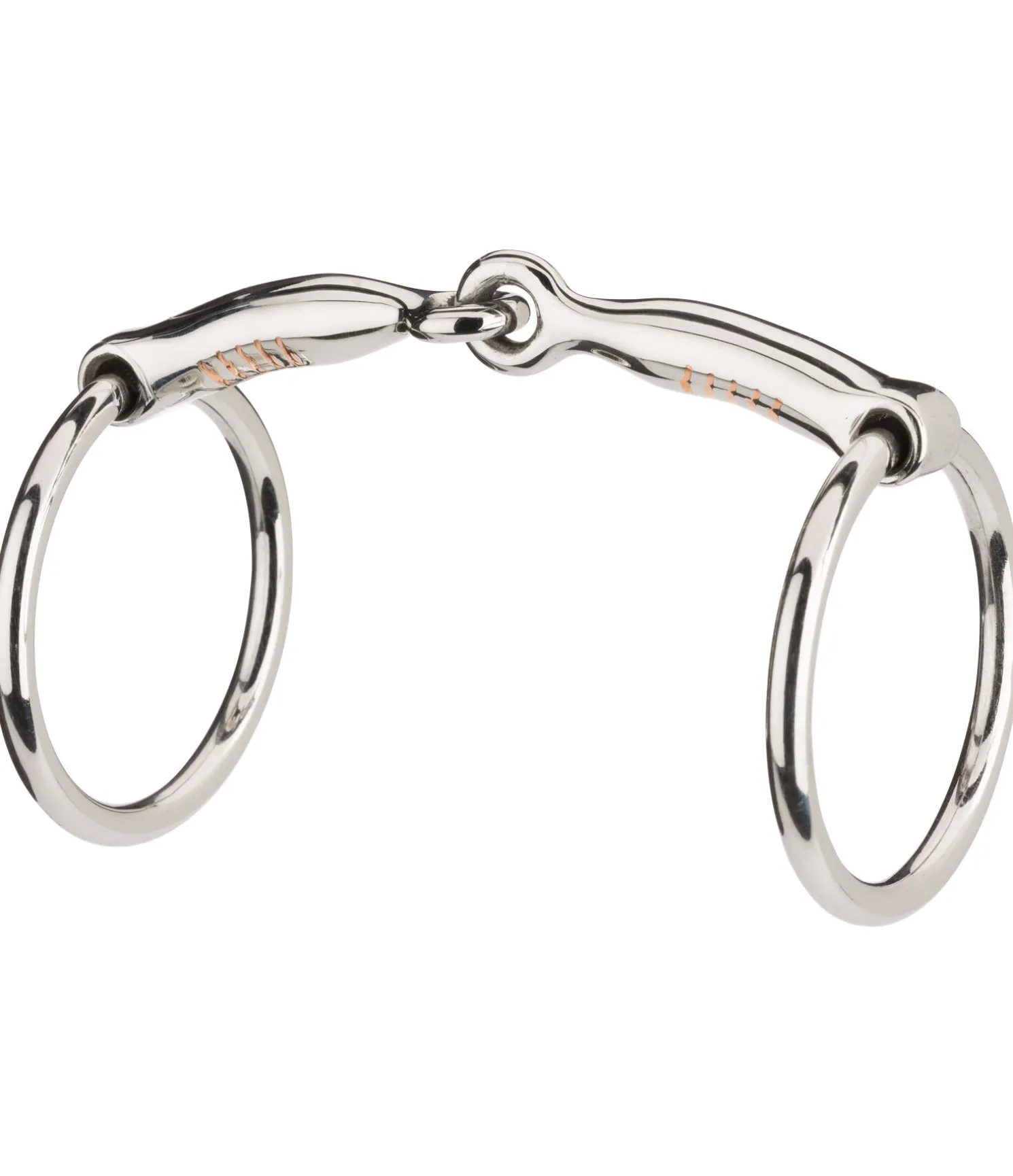 Mors simple brisure avec incrustations de cuivre en acier inoxydable. Les pièces de cuivre intégrées assurent une meilleure acceptation du mors par le cheval.