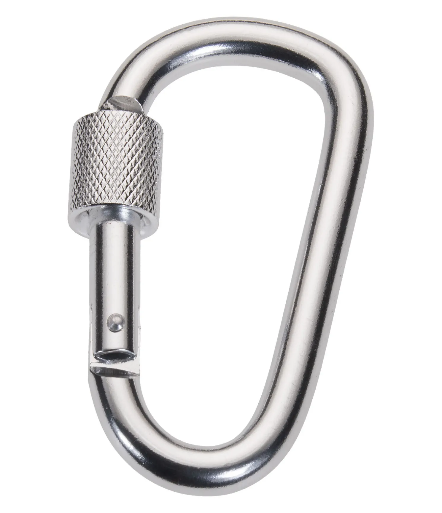 Mousqueton avec fermeture de sécurité. Nickelé.
