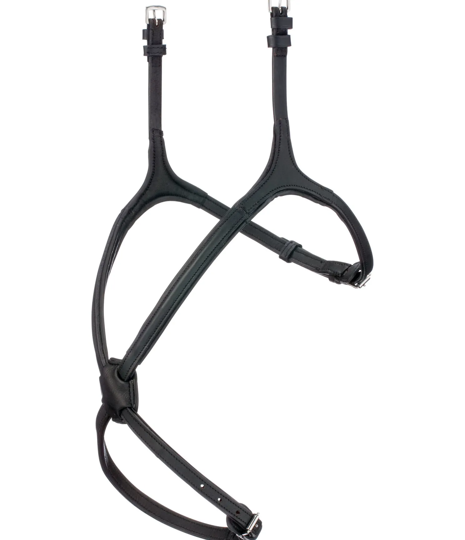 Muserolle croisée avec bases triangulaires, sans anneaux gênants. Point de croisement en cuir gras véritable, particulièrement agréable et flexible. Tous les éléments sont en cuir gras de grande qualité, particulièrement souple. Bouclerie argentée. Parfaitement assortie aux autres articles de la série CLARIDGE HOUSE Mix & Match PRO. En combinant les articles de la série CLARIDGE HOUSE Mix & Match PRO, vous pouvez créer le bridon de vos rêves.
