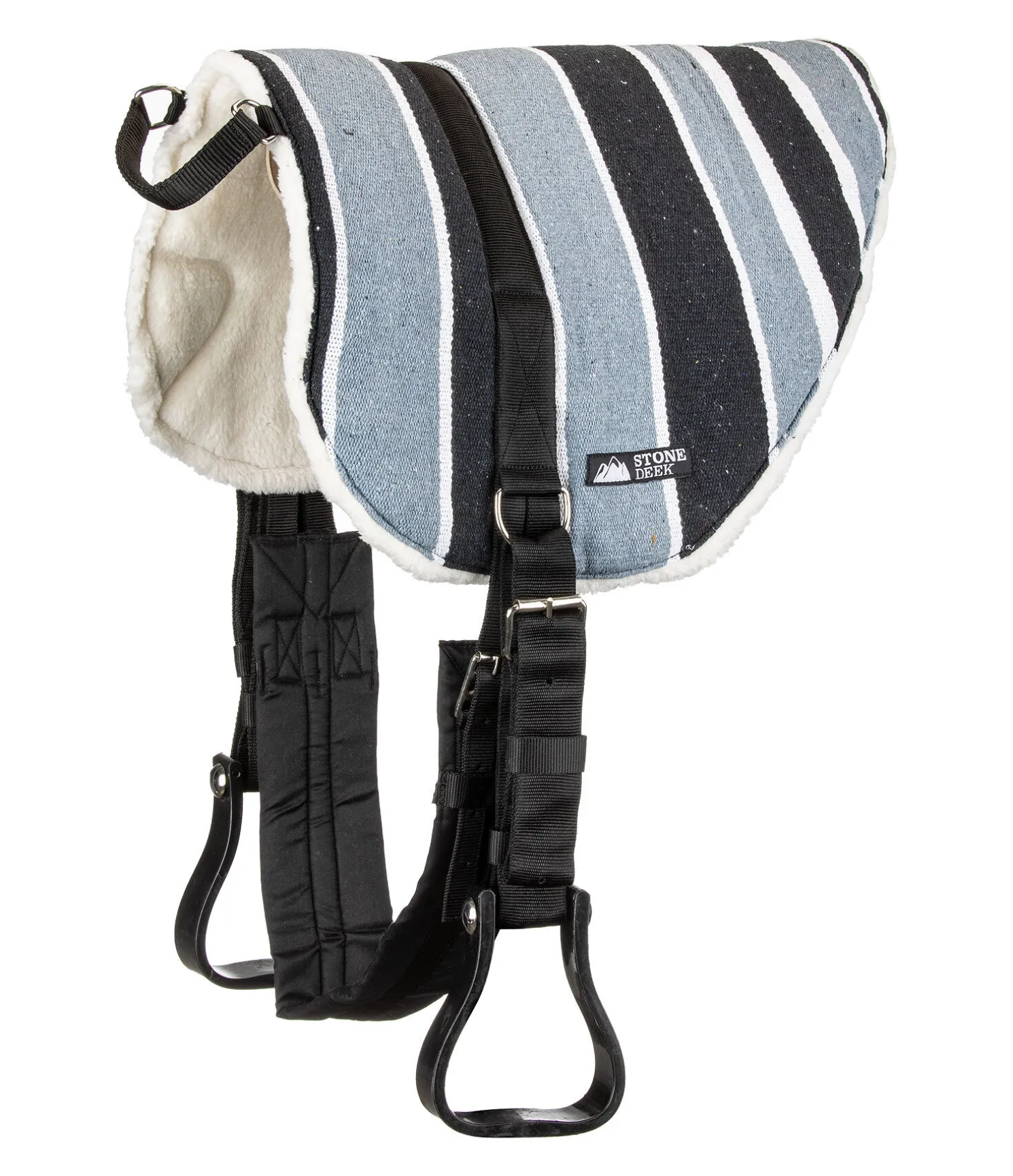 Pad de monte à cru intégralement doublé de polaire Teddy pour monter sans selle. Étriers western amovibles, sangle et poignée inclus. Convient pour trouver un équilibre à cru et corriger sa position.