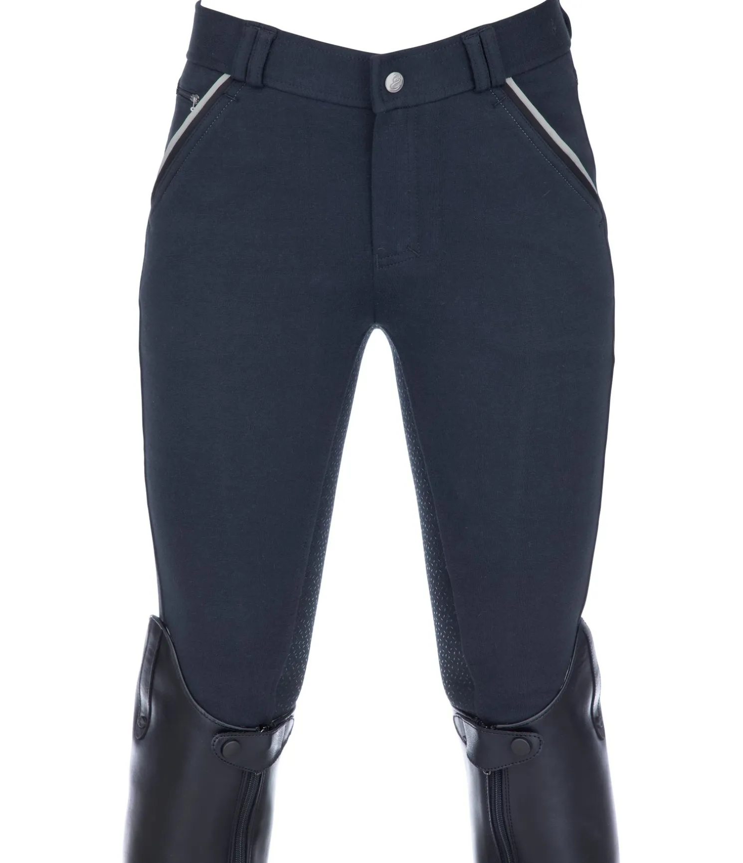 Pantalon d’équitation tendance. Taille basse particulièrement confortable. Coupe mixte. Fond intégral en silicone. Jolis détails de couleur contrastante. Bas de jambe extensible. 95 % coton, 5 % élasthanne.