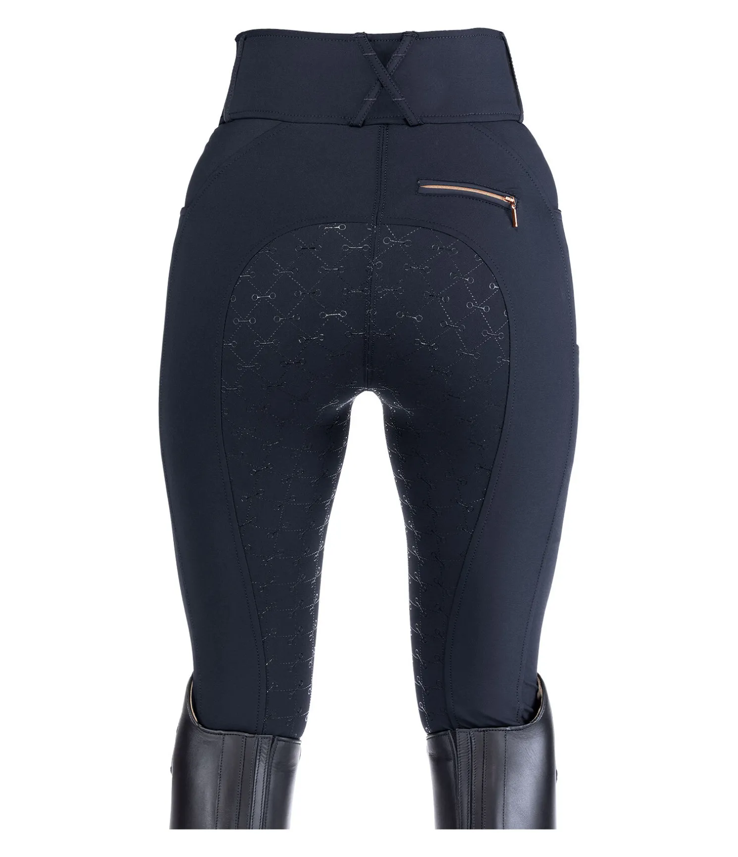 Pantalon d’équitation sportswear et extensible, à fond intégral grip en silicone avec motifs de mors. Matière déperlante, respirante et à séchage rapide. Broderie Felix Bühler sur la jambe. Poche arrière zippée et poche pour téléphone portable sur la cuisse. Deux poches avant. Ceinture à passants extra large élastiquée avec 2 boutons. Aucune couture aux genoux. Bas de jambe extensible en stretch. 89 % nylon, 11 % élasthanne.