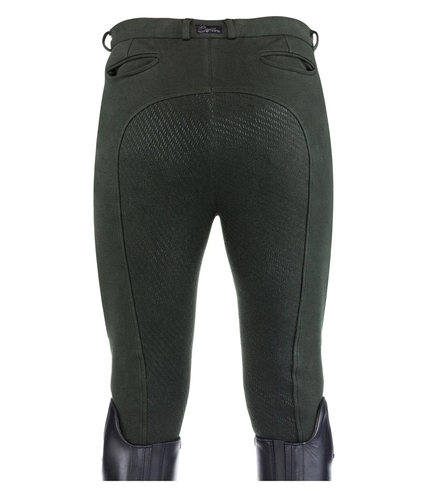 Pantalon d’équitation tendance avec fond intégral Grip siliconé. 2 poches avant et 2 poches arrière. Imprimé discret logo Equilibre. Bas de jambe extensible. Passants de ceinture. 95 % coton, 5 % élasthanne.