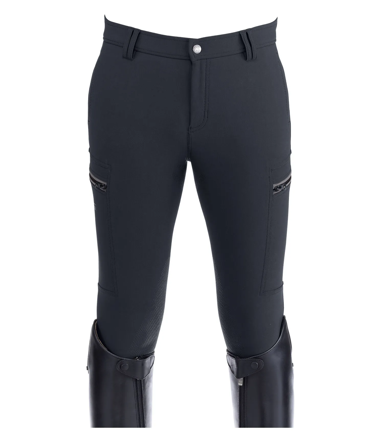 Pantalon d’équitation avec fond intégral grip siliconé. Matière extensible, déperlante, respirante à séchage rapide. 2 poches avant et 2 arrière. 1 poche plaquée et zippée pour téléphone portable sur chaque cuisse. Bas de jambe extensible. 93 % nylon, 7 % élasthanne.