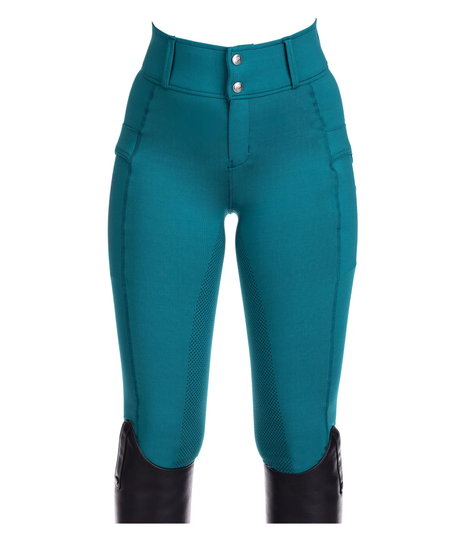 Pantalon d’équitation à fond intégral grip en silicone. Sportswear. Matière stretch respirante et extensible dans 4 directions. Poches latérales pour téléphone portable avec logo imprimé. Bas de jambe extensible. Ceinture large avec passants. Logo scintillant à l’arrière. Disponible dans des tailles intermédiaires. 89 % polyester, 11 % élasthanne.