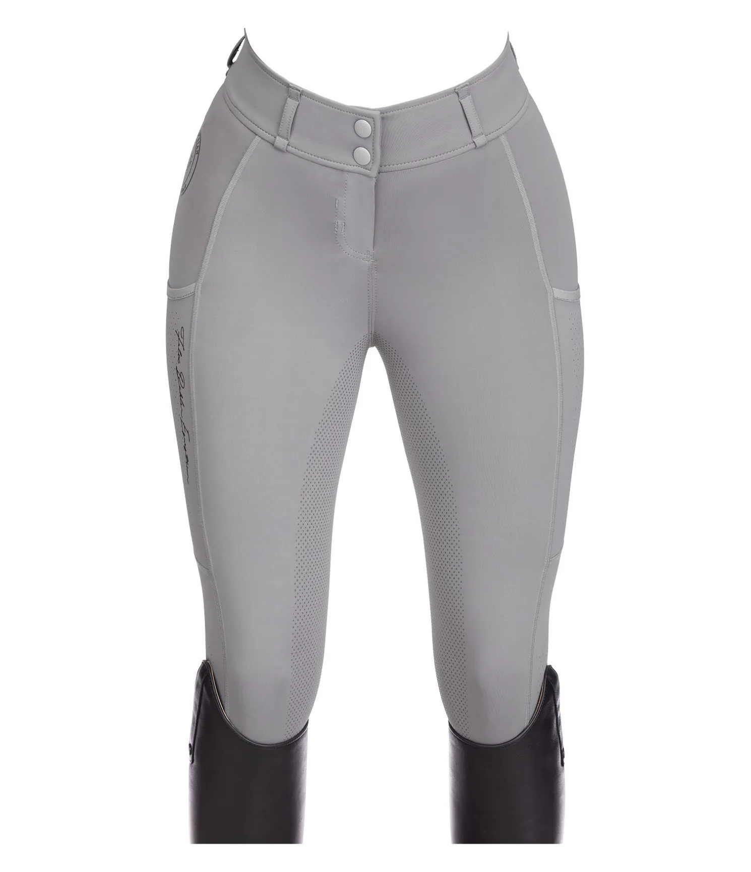 Joli pantalon d’équitation très léger et confortable. Nombreux empiècements en tissu à découpes laser sur la jambe et jusqu’aux poches plates. Effet sculptant grâce au stretch Performance 4 directions de qualité supérieure très extensible. Fond intégral en silicone. Très respirant et à séchage ultra-rapide. Ceinture confortable avec passants et 2 boutons. 2 poches latérales en tissu à découpes laser, 1 poche arrière zippée. Sans coutures aux genoux. Imprimé discret Felix Bühler. 78 % polyester, 22 % élasthanne.