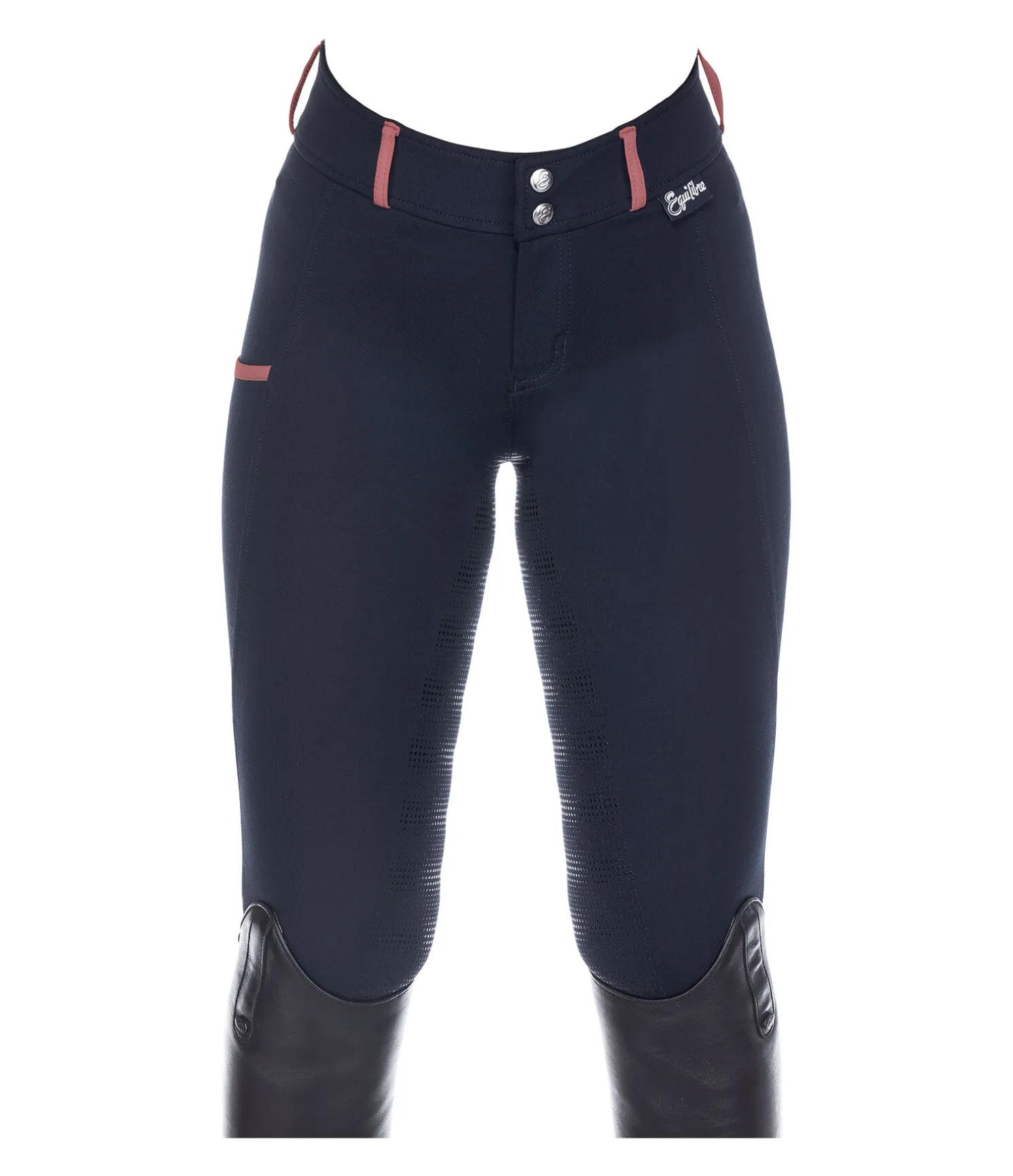 Magnifique pantalon d’équitation taille haute avec fond intégral en silicone. Matière respirante, extensible dans 4 directions. Bas de jambe extensible sans patte auto-agrippante. Poche latérale pour téléphone portable. Passants de ceinture au niveau de la taille. 68 % viscose, 27 % polyamide et 5 % élasthanne.