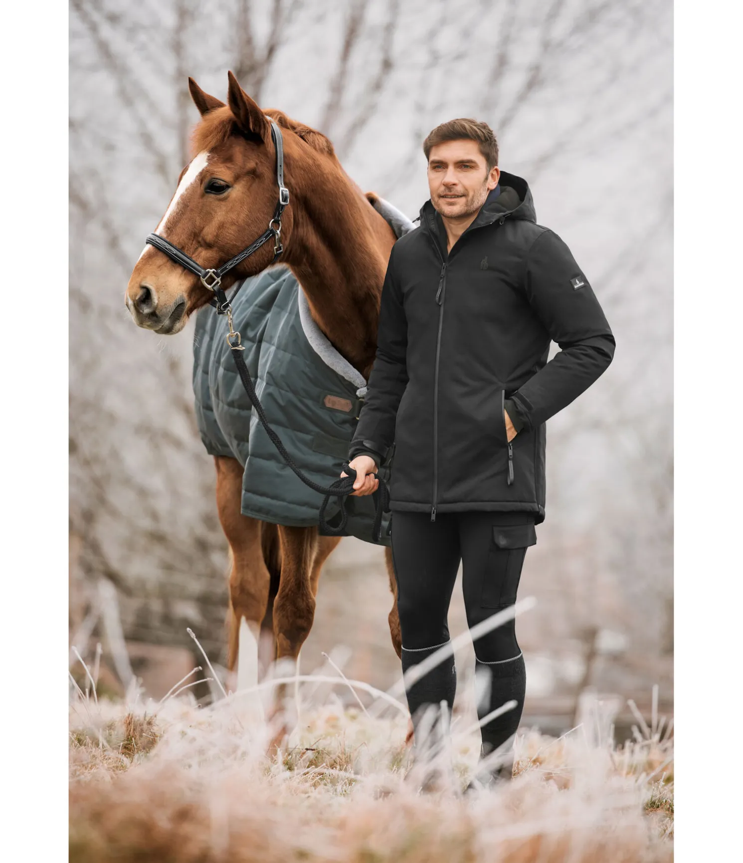 Parka technique d’équitation pour homme avec garnissage chaud. Imperméable (10 000 mm), coupe-vent et respirante. Fermeture à glissière double sens étanche avec protège-menton et deux poches zippées devant, poignets réglables par bande auto-agrippante. Col haut avec capuche réglable doublée de polaire et pouvant être fixée dans le dos. 2 fentes cavalières zippées à l’arrière. Poignets en bord-côte. 100 % polyester.