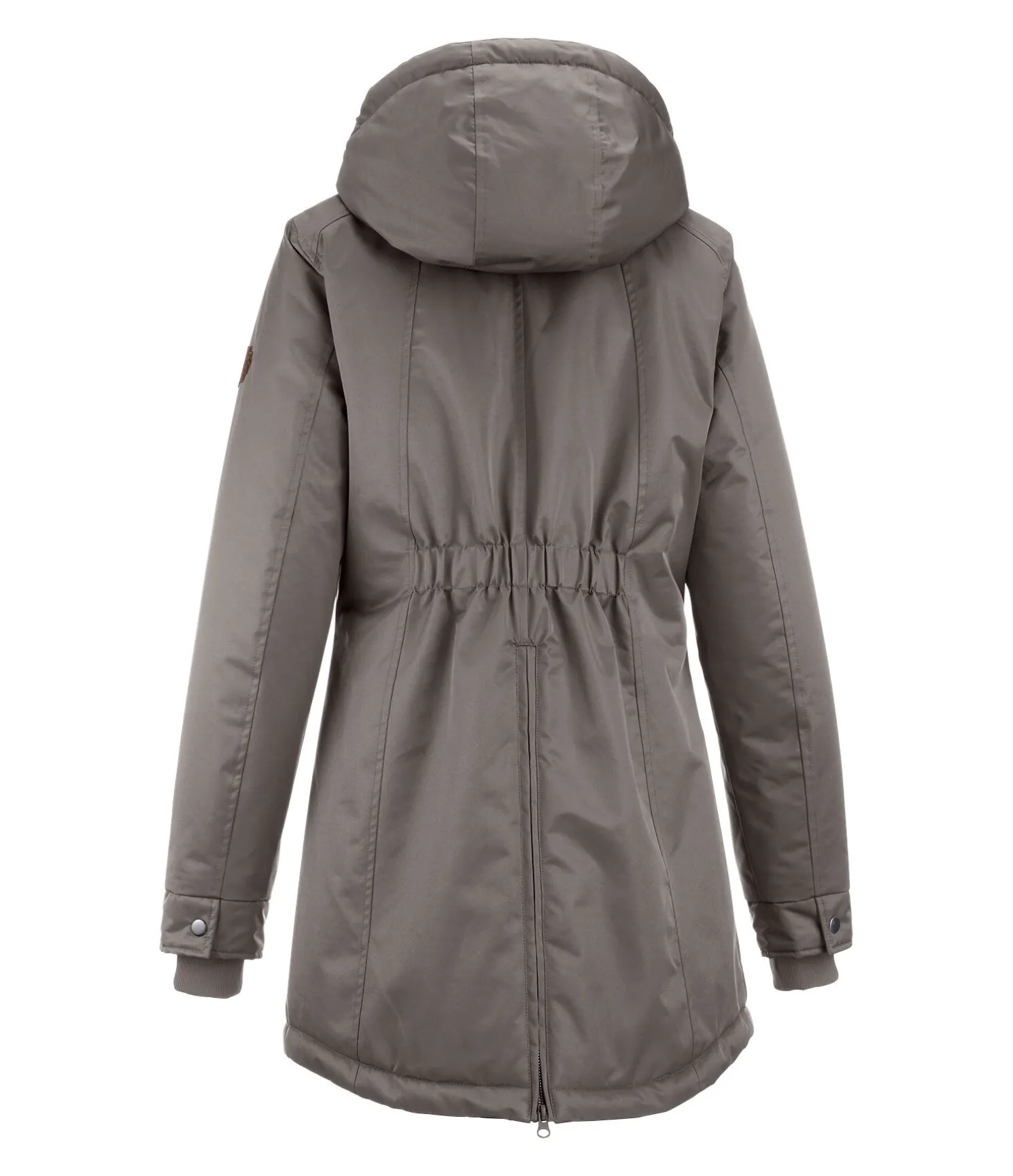 Manteau d’hiver coupe-vent et déperlant. Ajusté grâce à la ceinture élastique dans le dos. Fente cavalière à l’arrière. Avec fermeture à glissière double sens, deux poches zippées avant et une poche zippée intérieure. Capuche doublée de polaire teddy douce et fixable dans le dos par bouton-pression. Poignets avec bord-côte pour ne pas laisser passer le froid. Logo en synthétique sur la manche. 100 % polyester.