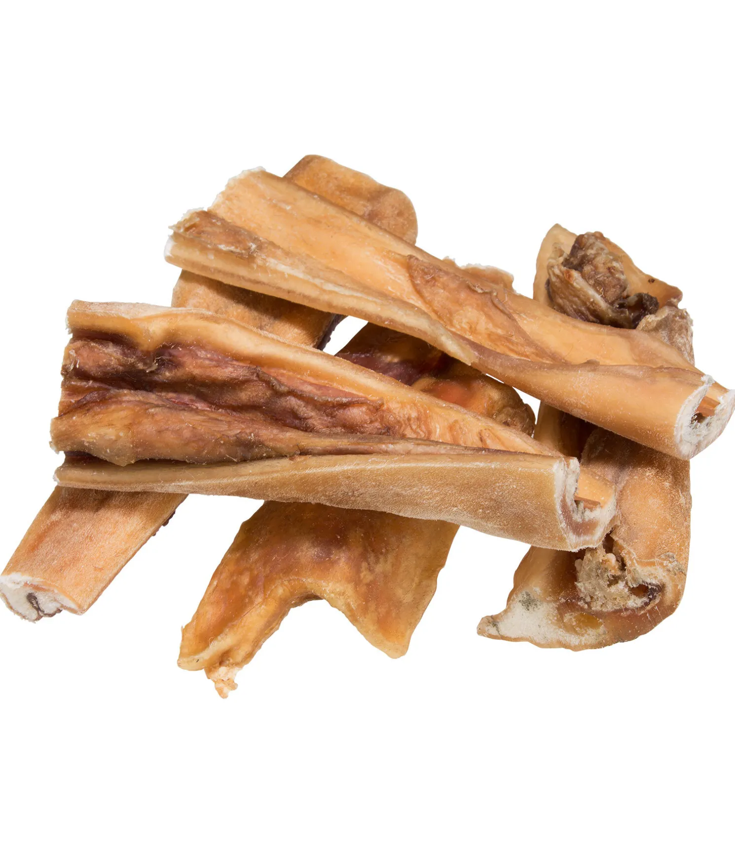 Lamelles de peau de tête de boeuf séchées et coupées pour un plaisir à mâcher durable. Produite en Autriche. Longueur : environ 15 cm. 250 g.
