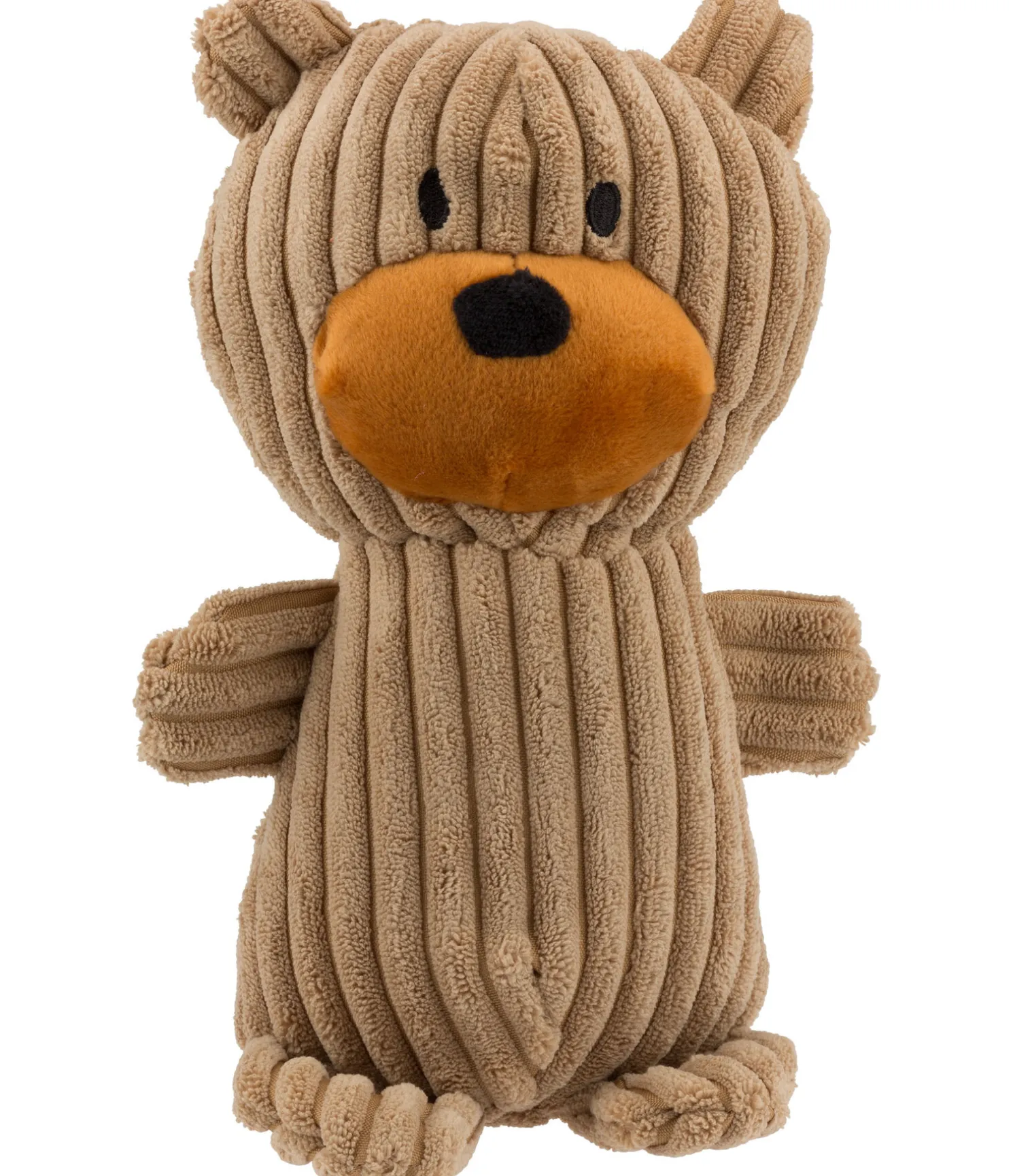 Peluche douce en forme d’ours avec couineur. 30 x 18 cm.