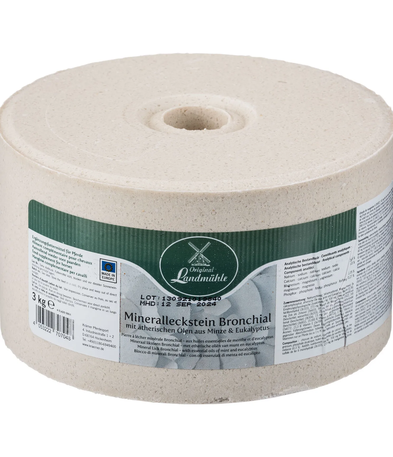 Pierre à lécher minérale savoureuse aux huiles essentielles de menthe et d’eucalyptus. Outre les minéraux, les oligo-éléments et les vitamines, la pierre contient de plus des huiles essentielles naturelles de menthe et d’eucalyptus qui peuvent contribuer à calmer et soulager les troubles respiratoires. Les huiles essentielles peuvent agir de manière efficace en cas de toux et autres troubles respiratoires et avoir un effet positif sur le système respiratoire et bronchique, en particulier pendant la saison froide et humide. À base de sel méditerranéen de qualité exceptionnelle, contenant de l’iode naturel.