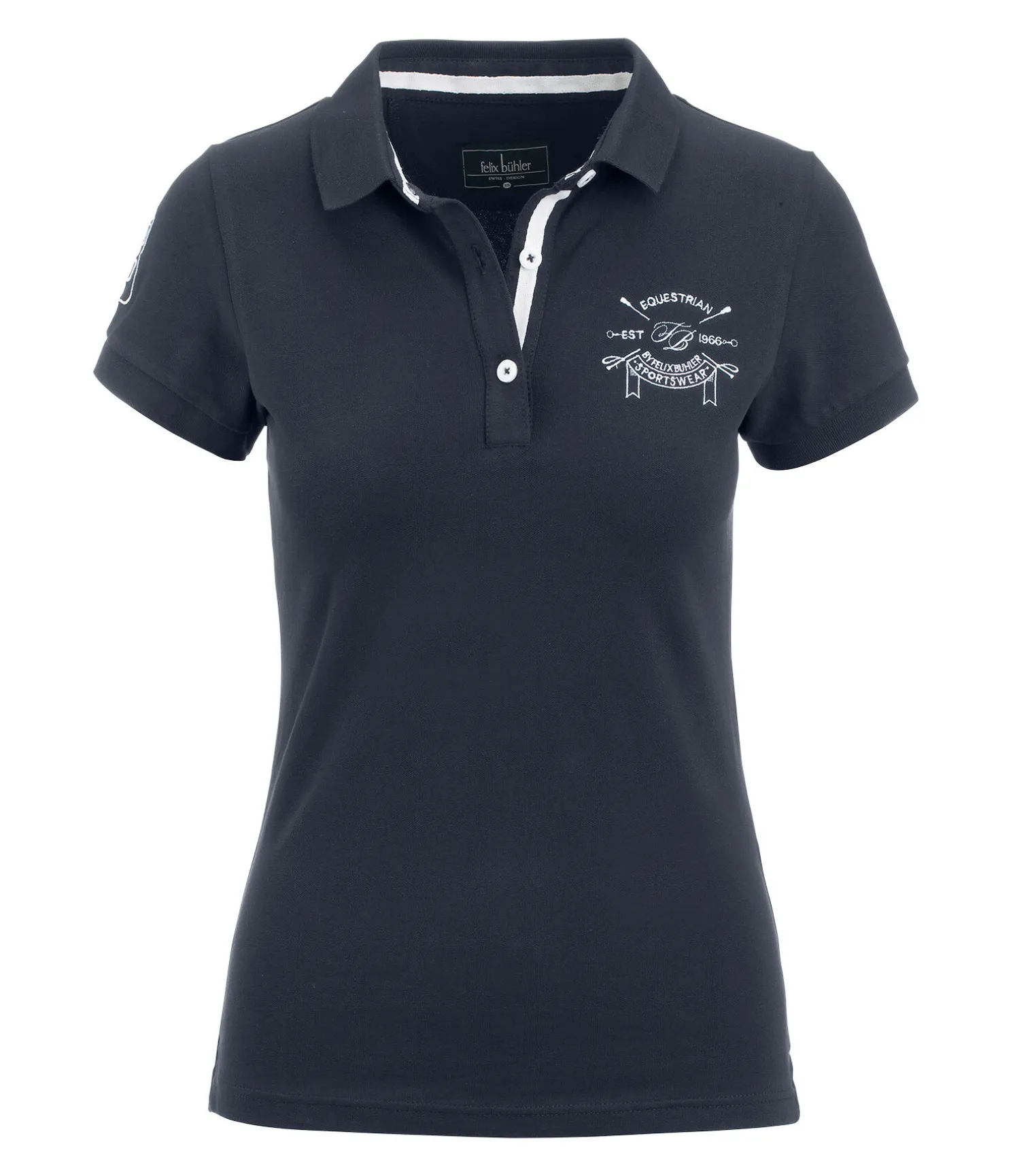 Un grand classique pour l’équitation. Polo en piqué de coton extensible de grande qualité. Broderies élaborées sur la poitrine et la manche. Bande de couleur contrastante à l’intérieur du col, sur la patte de boutonnage et les fentes latérales. Finition côtelée douce sur le bas des manches et le col. 95 % coton, 5 % élasthanne.