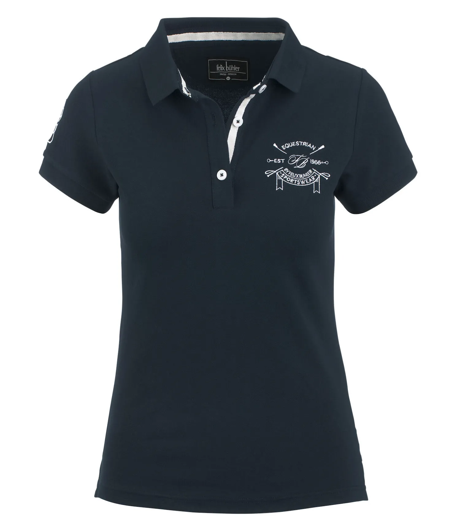 Un grand classique pour l’équitation. Polo en piqué de coton extensible de grande qualité. Broderies élaborées sur la poitrine et la manche. Bande de couleur contrastante à l’intérieur du col, sur la patte de boutonnage et les fentes latérales. Finition côtelée douce sur le bas des manches et le col. 95 % coton, 5 % élasthanne.