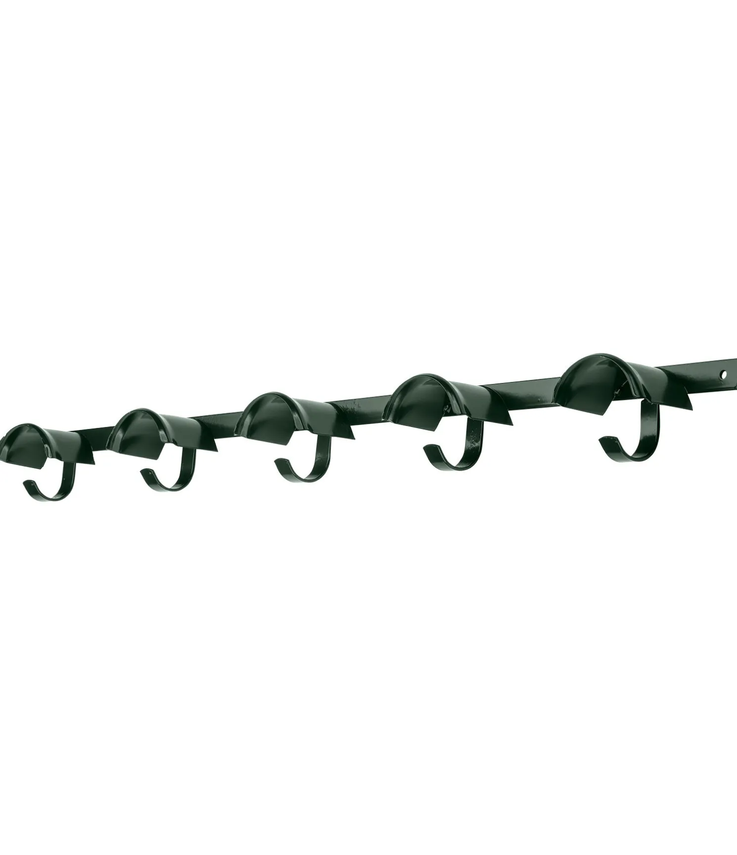 Très beau porte-brides en métal de grande qualité avec 5 supports et 5 crochets. N’abime pas les têtières de vos bridons et licols grâce à la large surface de contact, la courbure du métal évite au harnachement de glisser. 4 trous assurent une fixation simple et sûre. Dimensions : 1 m.