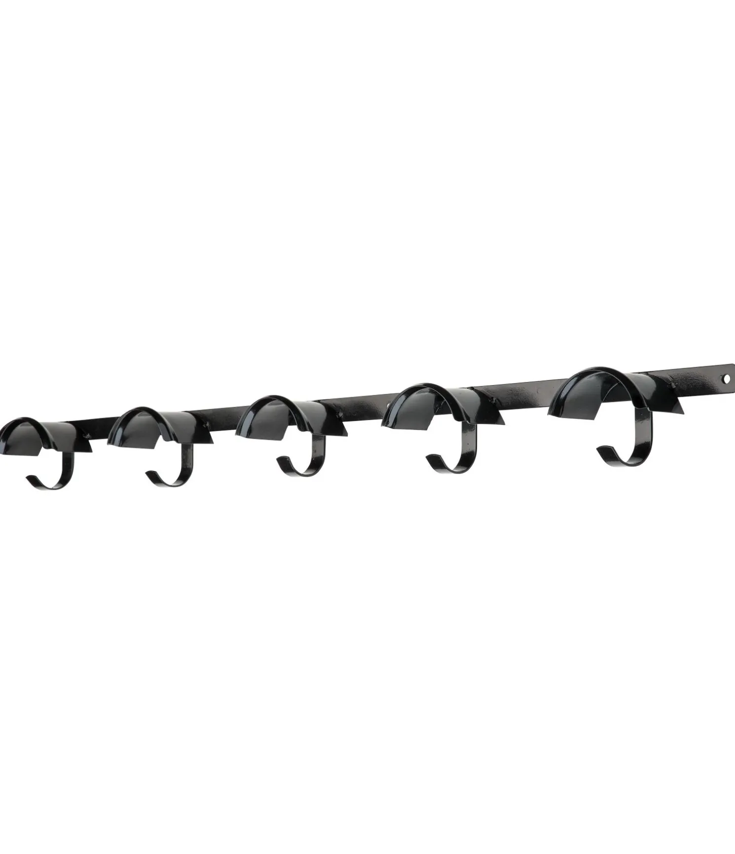 Très beau porte-brides en métal de grande qualité avec 5 supports et 5 crochets. N’abime pas les têtières de vos bridons et licols grâce à la large surface de contact, la courbure du métal évite au harnachement de glisser. 4 trous assurent une fixation simple et sûre. Dimensions : 1 m.