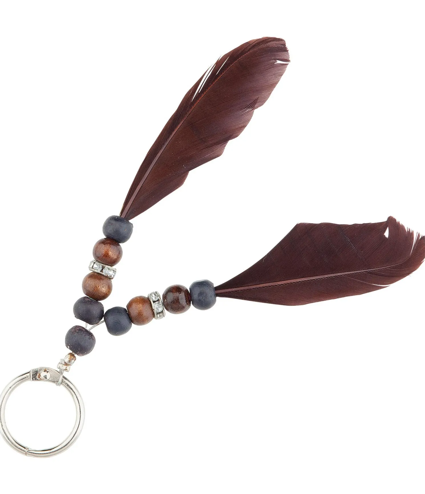 Superbe porte-clés avec perles et plumes pour décorer bridons, licols, colliers de chasse, etc. Anneau pour un accrochage facile et rapide.