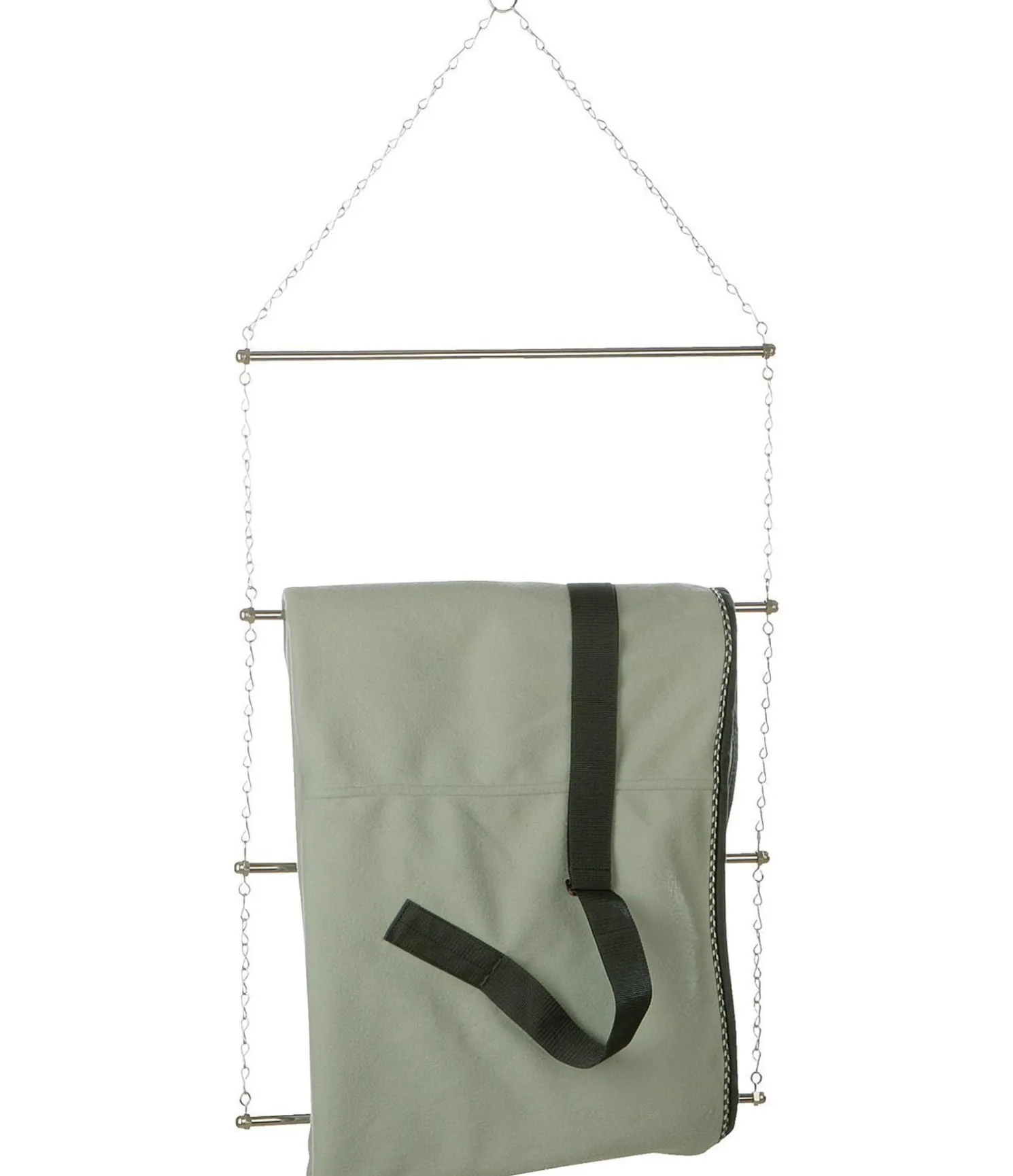 En métal robuste. Pour faire sécher et ranger les tapis de selle ainsi que les chemises légères. Longueur 60 cm.