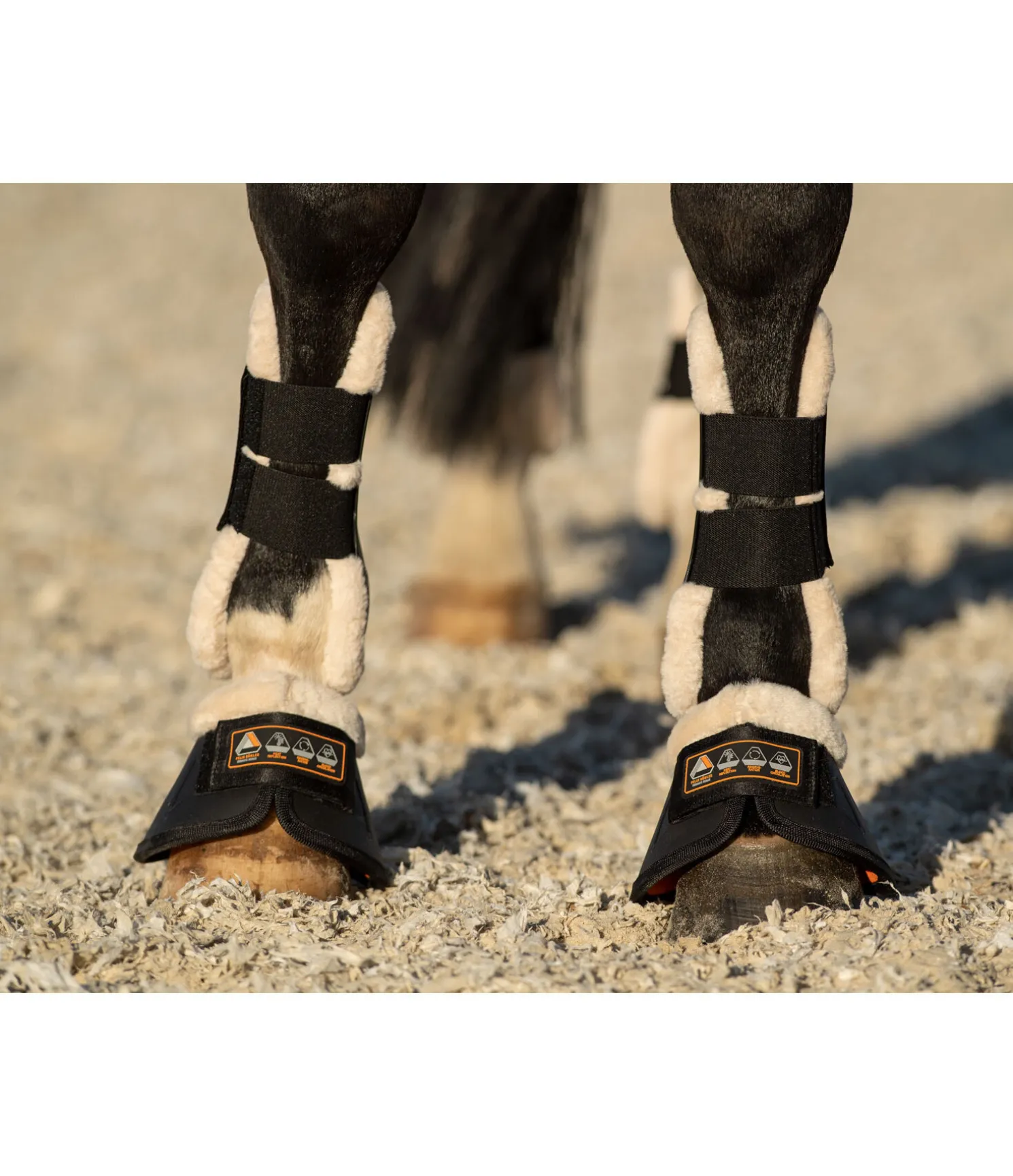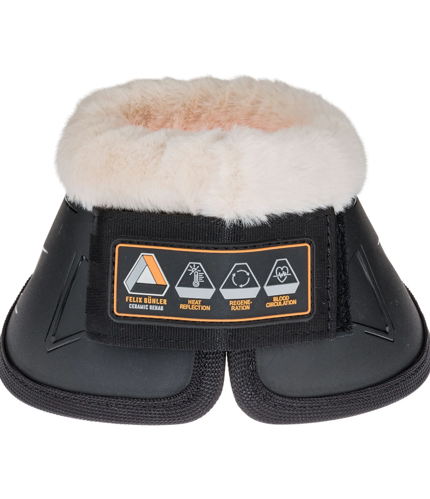 Protège-glomes anatomique solides en TPU avec taquet anti-twist pour empêcher la rotation de la protection. Les fibres de céramique intégrées à la doublure intérieure en tissu Air mesh respirant, favorisent la circulation sanguine et empêchent ainsi le refroidissement de l’articulation pendant les phases d’immobilisation. Elles peuvent également soutenir les articulations pendant la phase d’échauffement et durant l’entraînement. Ces protège-glomes conviennent également parfaitement aux chevaux souffrant de maladie chronique au niveau du sabot comme le syndrome naviculaire ou l’arthrose. La bordure douce en polaire Teddy prévient des irritations dues aux frottements au niveau du pli du paturon, ce qui est particulièrement important en cas de port prolongé. Nous recommandons de nettoyer régulièrement la polaire Teddy et de contrôler quotidiennement la peau au niveau du protège-glome en cas de port prolongé. Patte auto-agrippante solide pour un maintien optimal. Compatible avec les guêtres à coque rigide Felix Bühler Ceramic Rehab (art. 590 009) et les protège-boulets Felix Bühler Ceramic Rehab (art. 590 010).