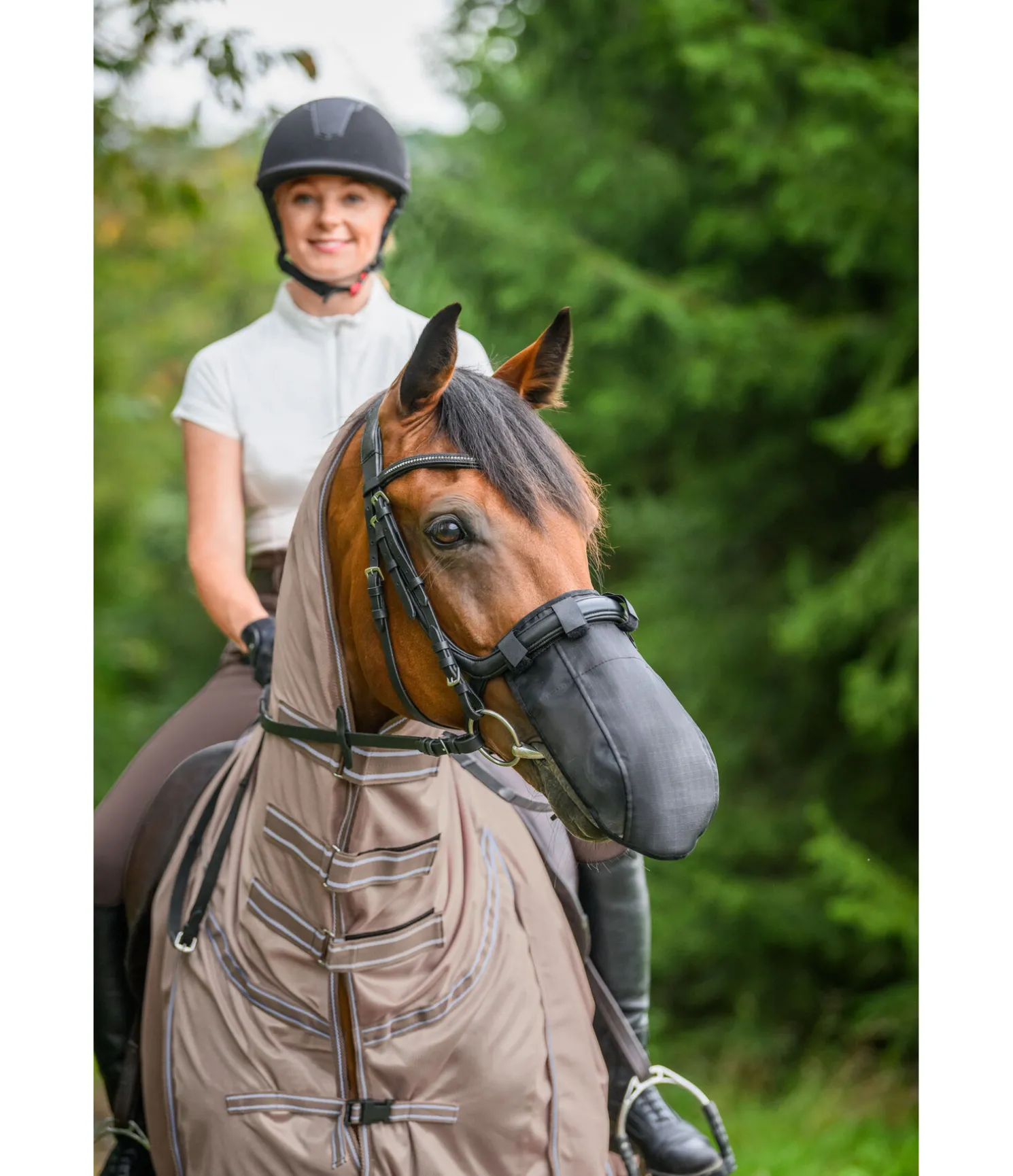 Conception innovante en maille ripstop solide et fine et en polyester Oxford 600 deniers respirant pour protéger la zone sensible des naseaux contre les rayons du soleil. La maille ripstop bloque au moins 60 % des rayons UV et offre en même temps une protection sûre contre les mouches. Au milieu, le tissu en polyester Oxford bloque 97 % des rayons UV. Se fixe facilement au licol ou à la muserolle à l’aide de pattes auto-agrippantes. Doublure intérieure douce en tissu éponge. 100 % polyester.