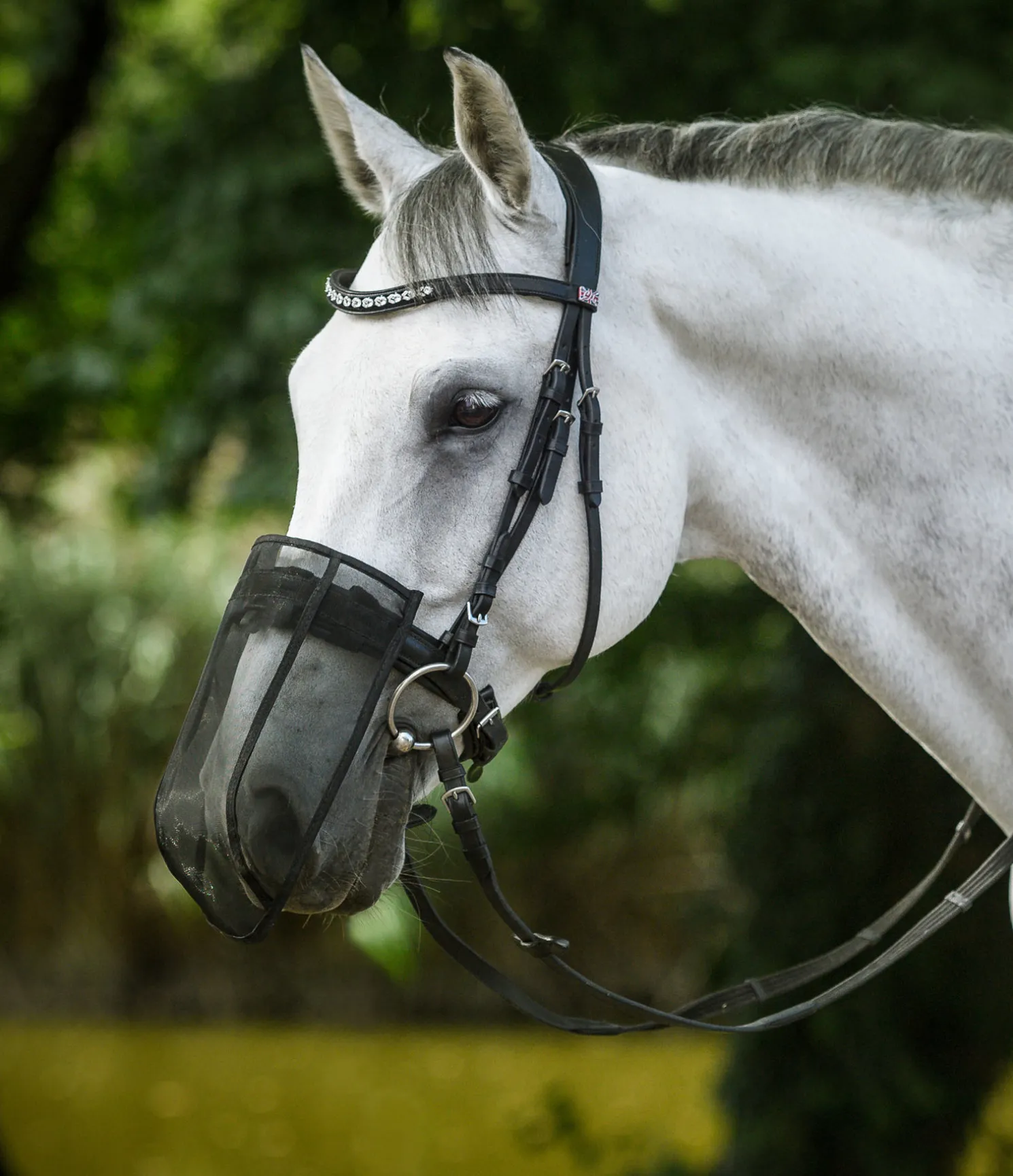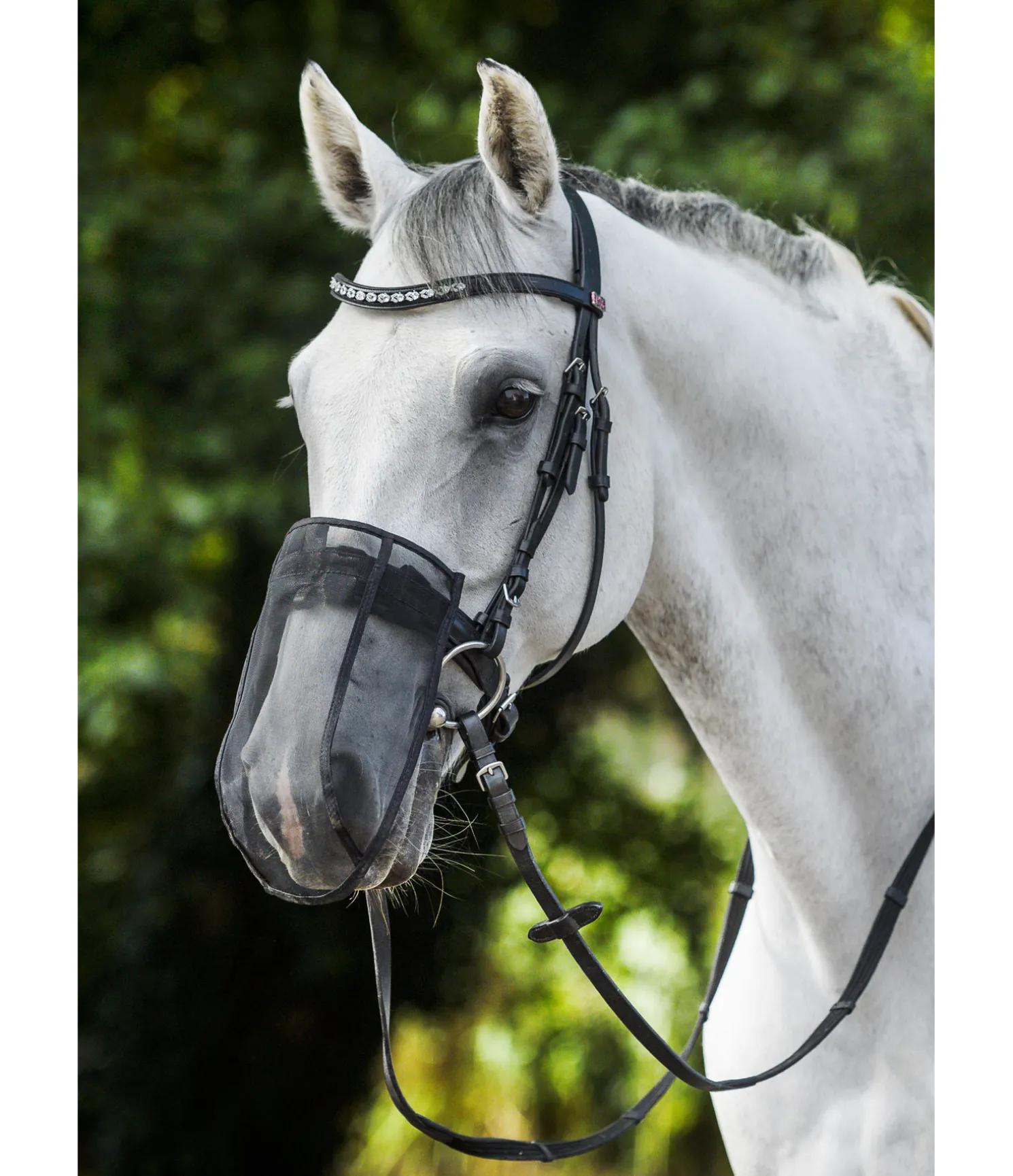 Protection anti-mouches efficace et aide radicale contre le headshaking. Même si les raisons de l’encensement (headshaking) ne sont pas véritablement connues, on sait que l’utilisation d’un protège-naseaux en filet fait disparaitre ce symptôme chez la plupart des chevaux. Facile à fixer au licol ou au bridon. 100 % polyester.