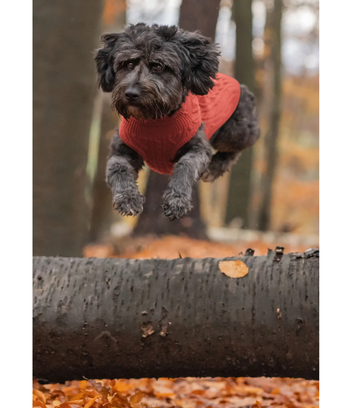 Pull en tricot torsadé tendance avec col roulé. Matière robuste, extensible et facile d’entretien. Ajustement optimal à la morphologie du chien. Enfilage facile et rapide. Confort optimal garanti même lorsque le chien est en mouvement. Petit médaillon en forme de coeur cousu pour compléter le look. Passage pour attacher la laisse au harnais. 60 % polyacrylique, 40 % nylon.