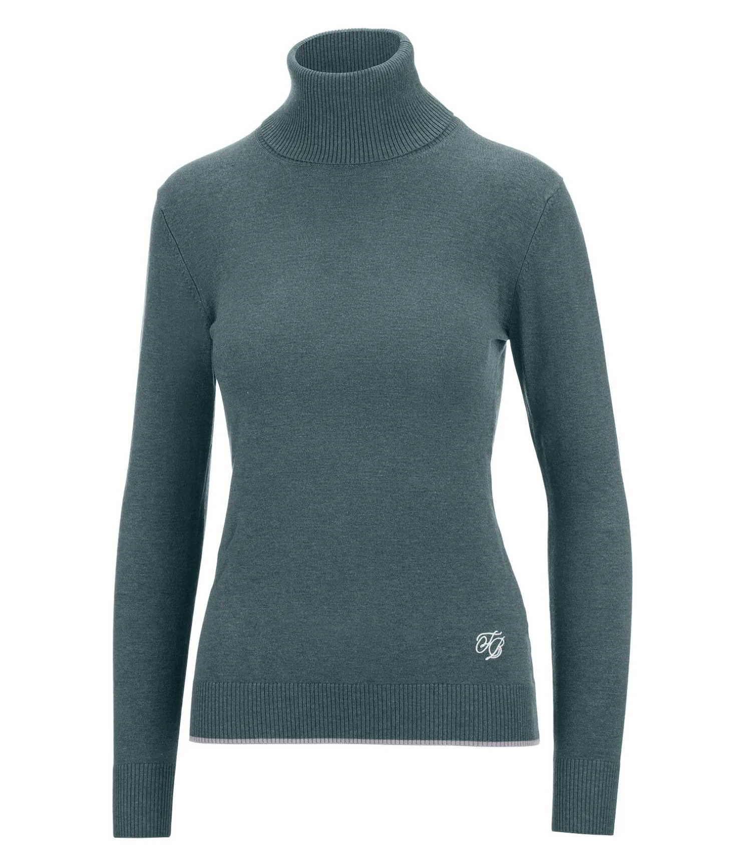 Pull-over doux à col roulé. Aspect chiné. Logo brodé. Finition côtelée en bas des manches et à la taille. Bordure de couleur contrastante à la taille. 80 % viscose, 20 % nylon.