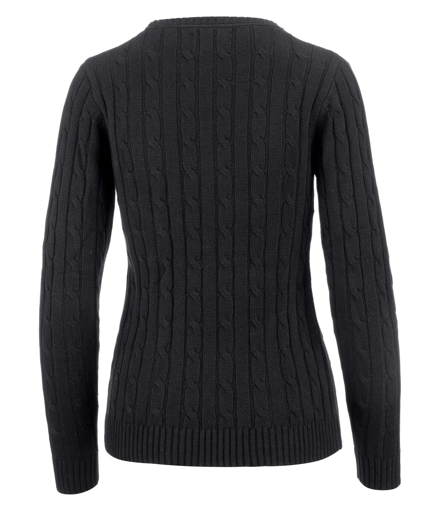 Pull-over à col rond classique et doux en tricot torsadé. Broderie Felix Bühler sur la poitrine. Bordure côtelée en bas des manches et à la taille. 60 % coton, 40 % polyacrylique.