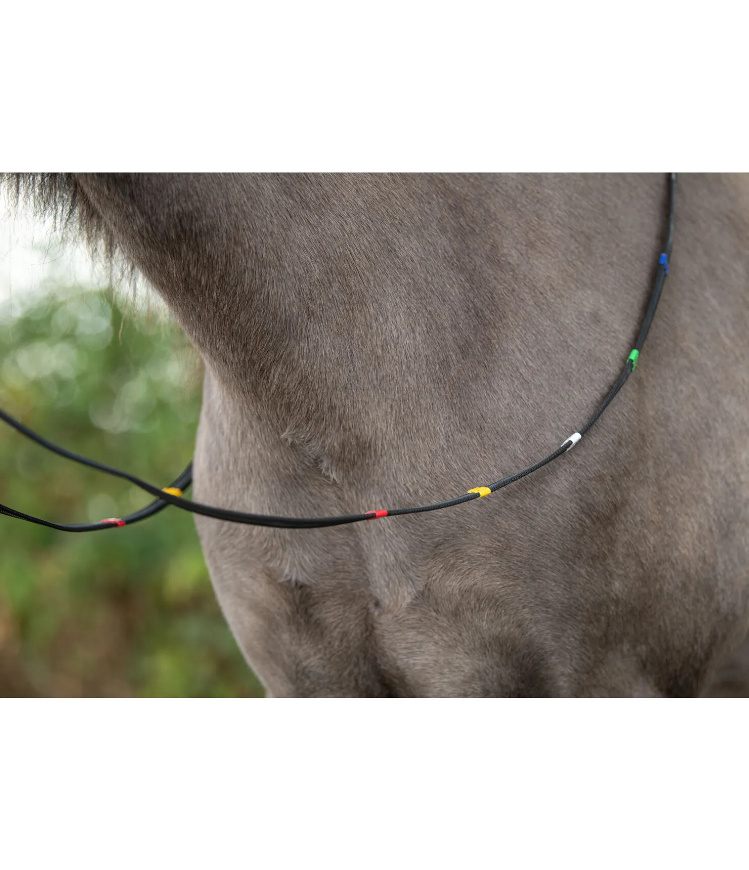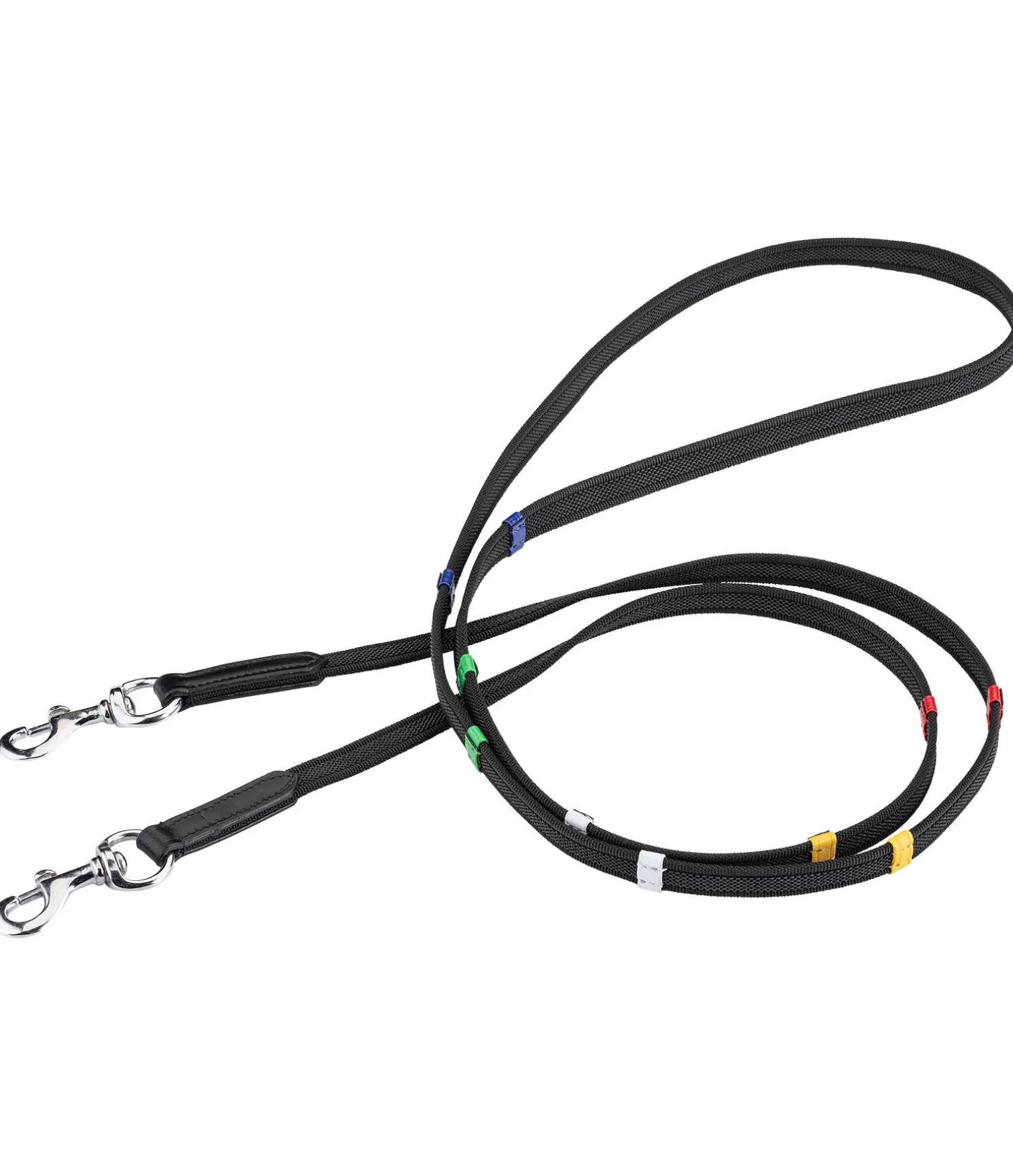 Rênes caoutchoutées avec arrêtoirs en cuir coloré pour éviter que les rênes ne glissent. Parfaites pour avoir un repère visuel pendant les cours d’équitation. Longueur 235 cm, largeur 1,5 cm.