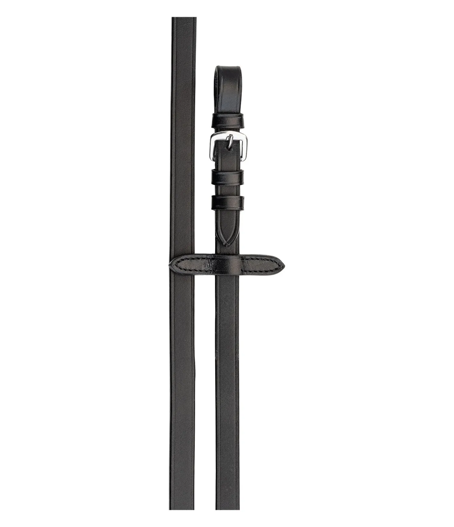 Rênes classiques et fines en cuir véritable. Fabriquées en cuir gras de qualité, particulièrement souple. Avec arrêtoirs de martingale et bouclerie argentée en acier inoxydable. 290 x 1,7 cm.