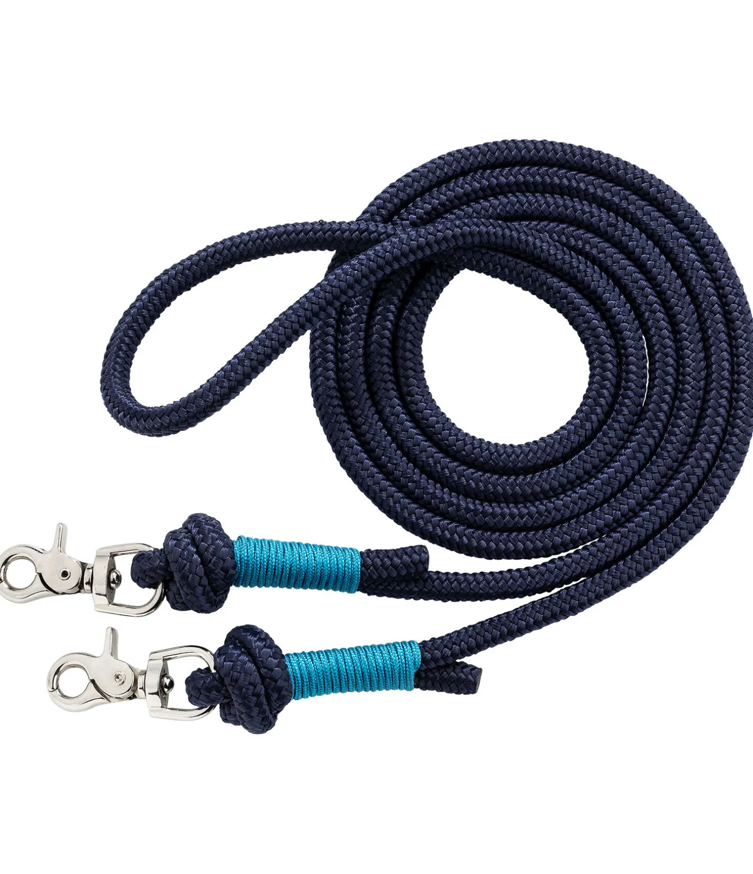 Rênes fermées particulièrement légères pour une connexion précise avec la bouche du cheval. Épaisseur 1,2 cm. Longueur (bout à bout) : 3 m. 100 % polyester.