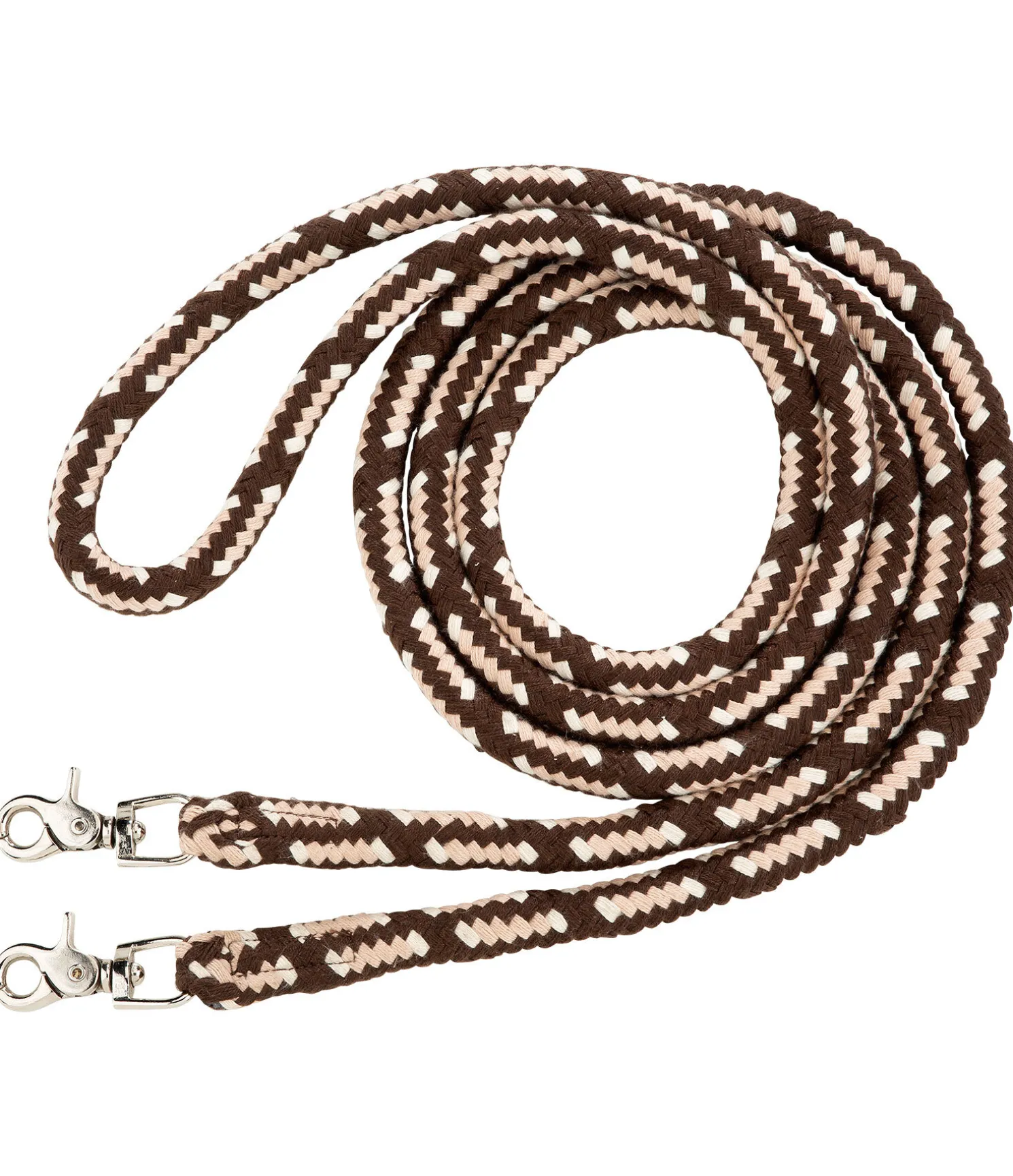 Rênes fermées douces en coton. Rondes et lourdes, elles reposent agréablement dans la main. 300 x 2 cm.