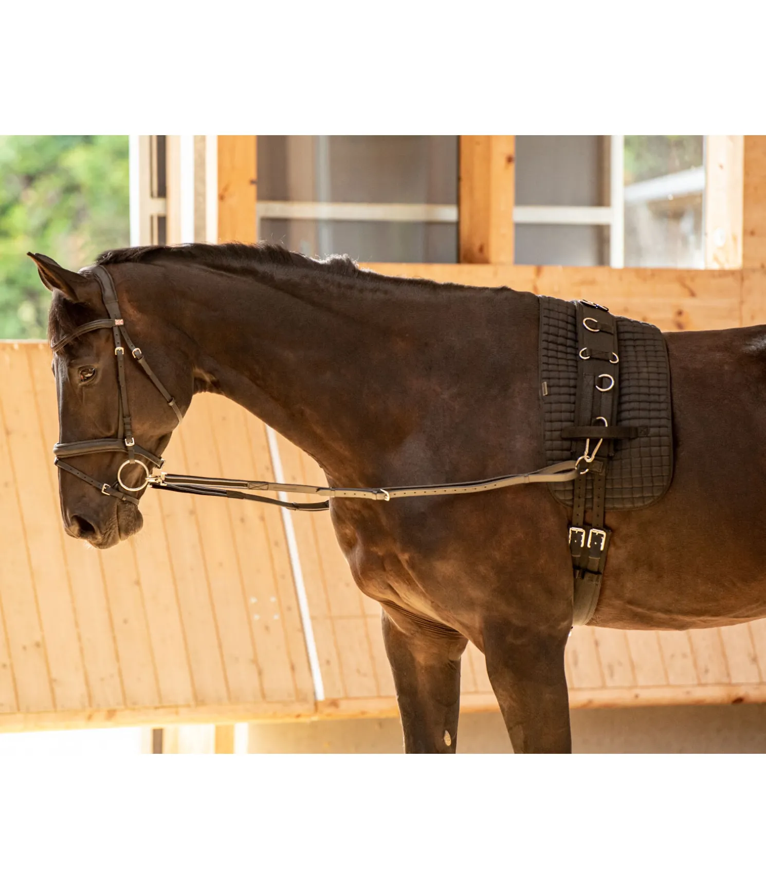 Rênes fixes en cuir solide avec empiècements élastiques doublés pour une connexion douce à la bouche du cheval. Fixation rapide aux anneaux du mors à l’aide des clips. Idéales pour le travail en longe ou monté. 100 % cuir, empiècements élastiques 100 % nylon.