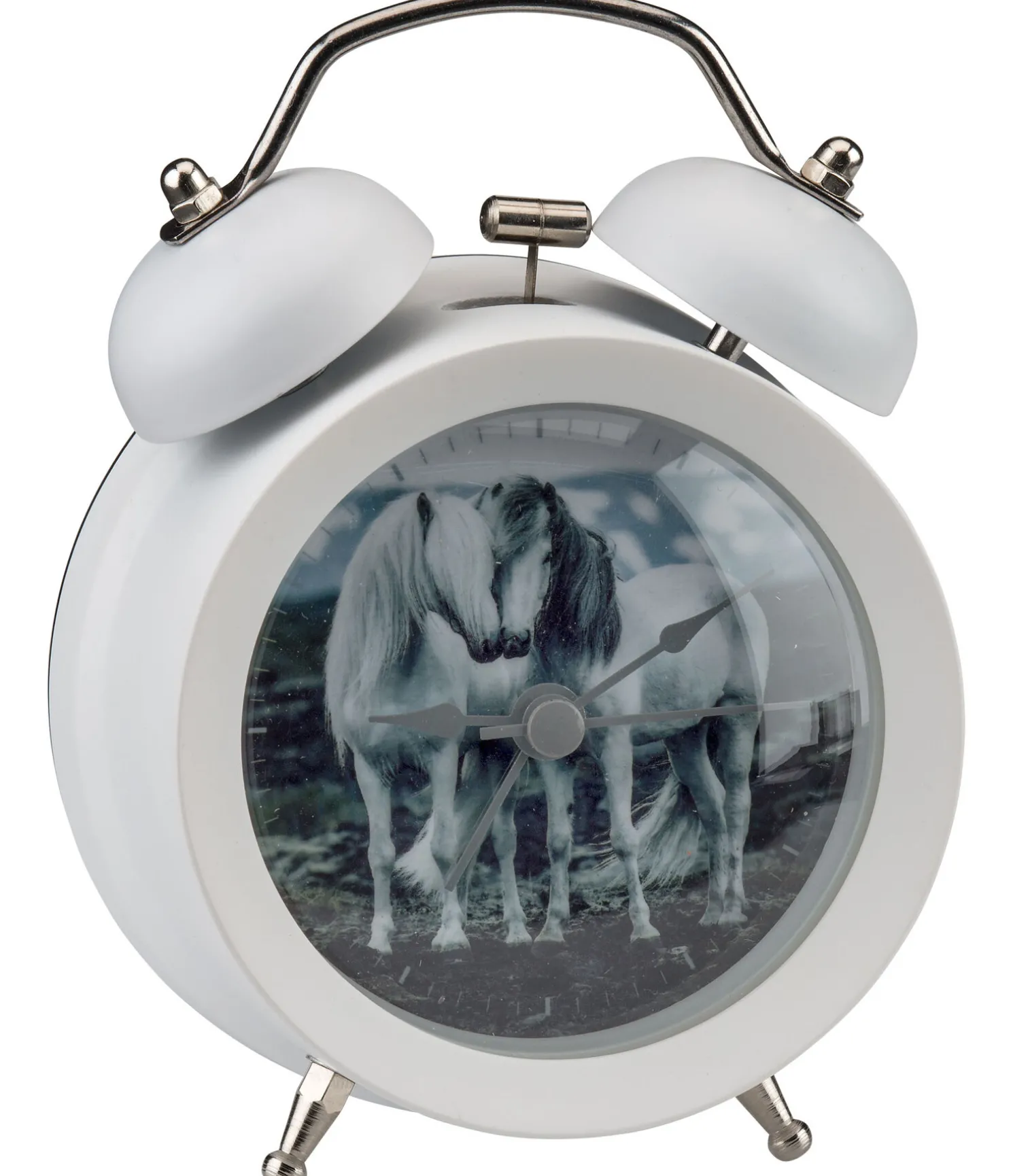 Petit réveil avec un joli motif cheval. 8,4 x 12,5 x 5 cm.