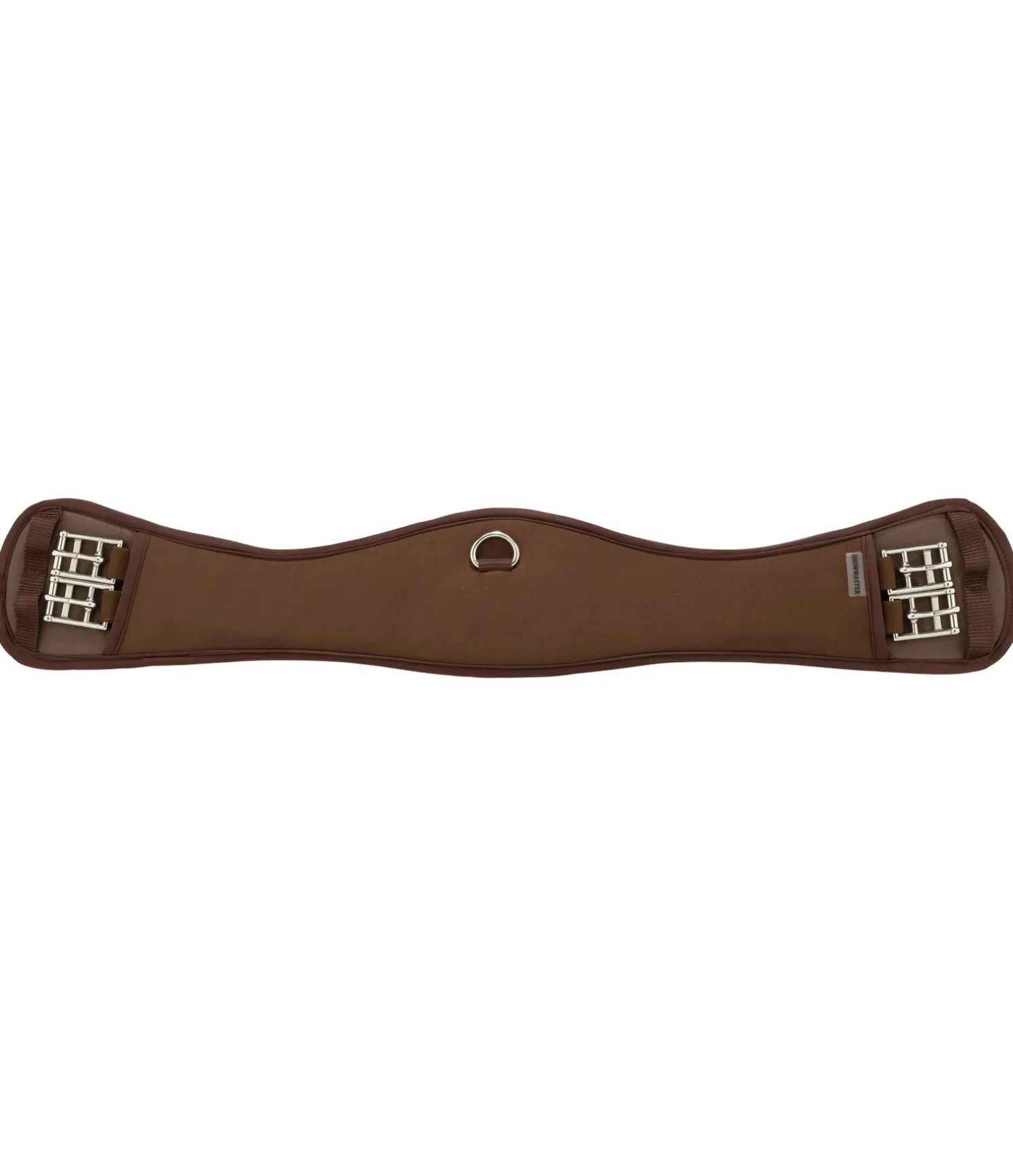 Sangle de dressage avec courbe anatomique, idéale pour les chevaux ayant besoin de beaucoup d’espace pour les coudes et chez lesquels le sanglage a tendance à faire glisser la selle vers l’avant. Mousse à mémoire de forme. Absorbe les chocs et les pressions puis retrouve son aspect initial. Dessus en caoutchouc chloroprène souple. Surface de contact anatomique large. Boucles à rouleau en acier, anneau en D au milieu. Largeur : 8,5 à 13 cm.
