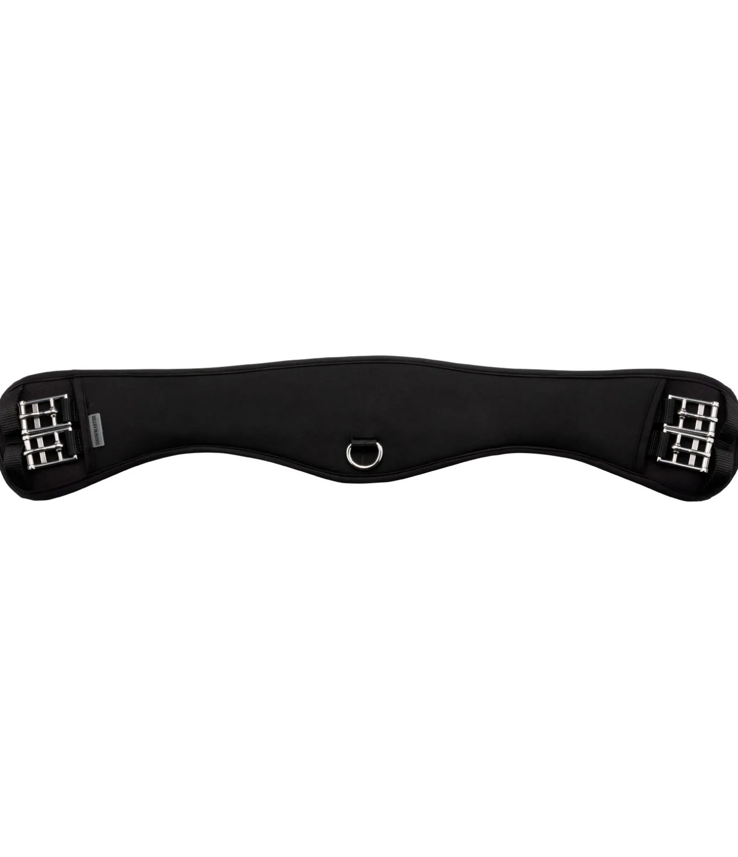 Sangle de dressage avec courbe anatomique, idéale pour les chevaux ayant besoin de beaucoup d’espace pour les coudes et chez lesquels le sanglage a tendance à faire glisser la selle vers l’avant. Mousse à mémoire de forme. Absorbe les chocs et les pressions puis retrouve son aspect initial. Dessus en caoutchouc chloroprène souple. Surface de contact anatomique large. Sans élastiques. Boucles à rouleau en acier, anneau en D au milieu. Largeur : 8,5 à 13 cm.