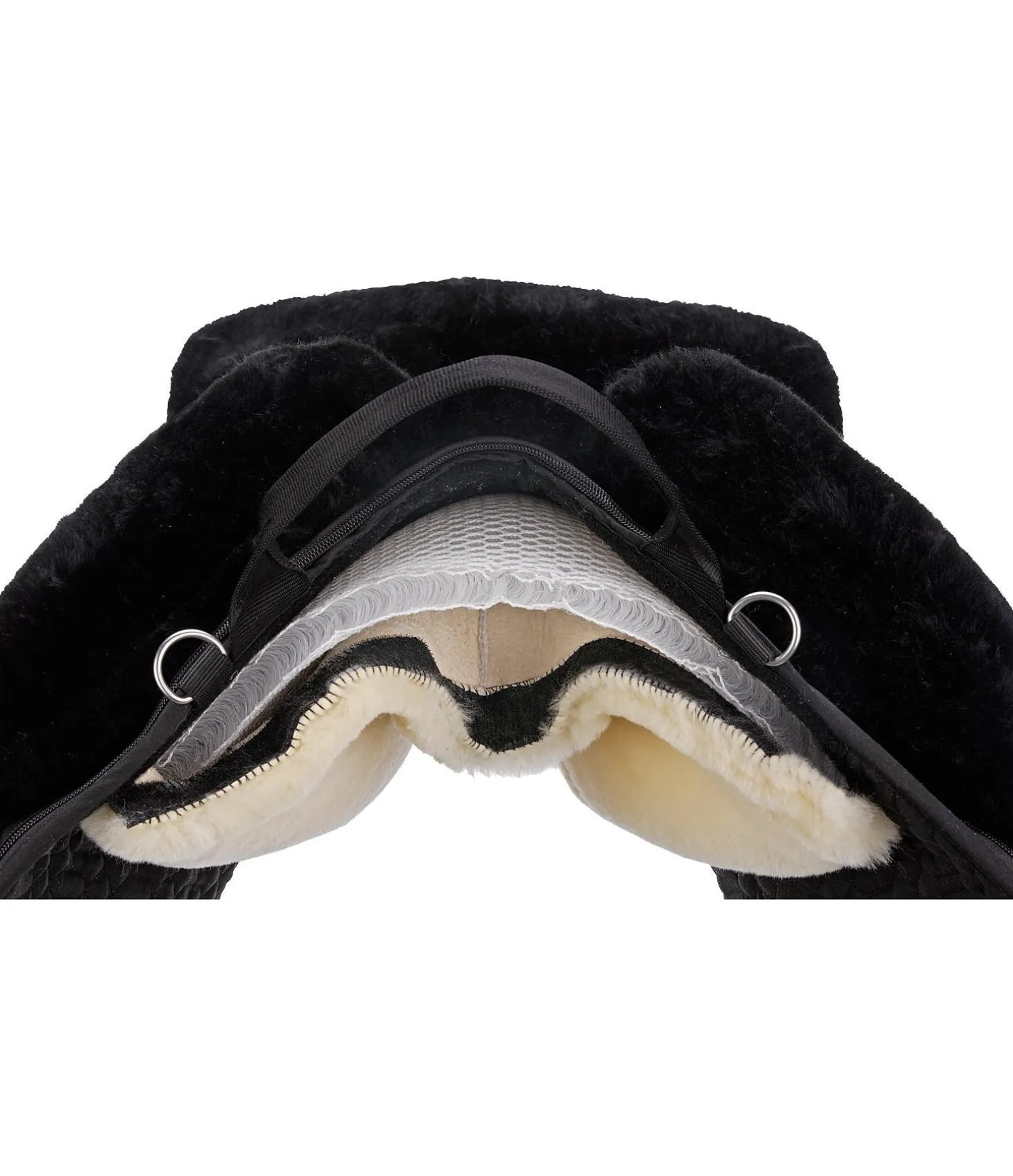 Selle en véritable fourrure d’agneau améliorant de manière significative la communication entre le cavalier et le cheval. Extérieur et dessous 100 % fourrure d’agneau. Taquets à l’avant pour un maintien sûr et un confort optimal. Inserts épais amovibles et repositionnables pour un parfait ajustement et un grand confort pour le cheval. Avec couteaux d’étrivières, deux anneaux en D à l’avant, deux anneaux en D à l’arrière et longs contre-sanglons.