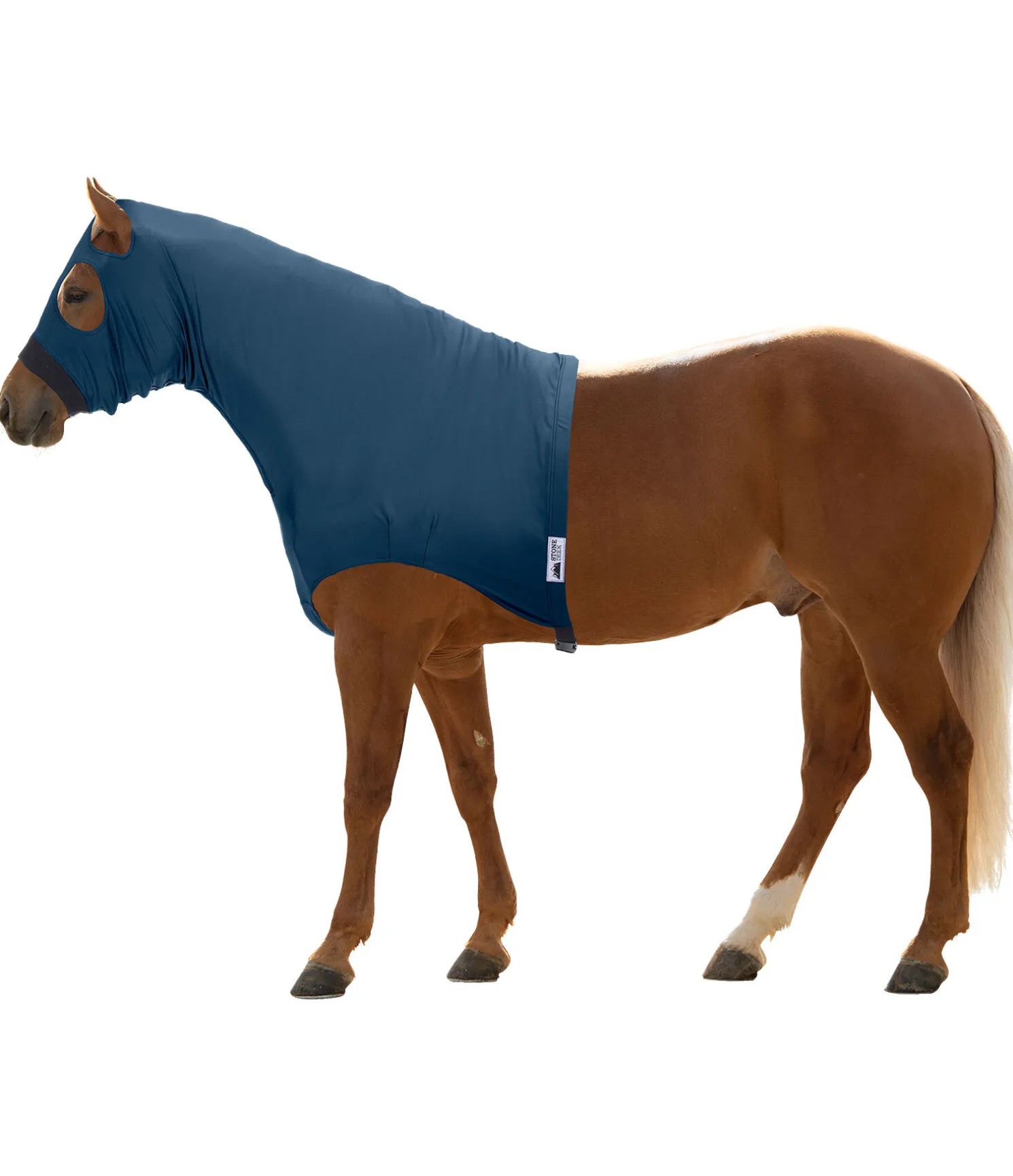 Sleazy pratique en matière extensible. Protège les crins et la robe de la saleté, par exemple avant un concours. Fixation derrière les antérieurs grâce à une fermeture à clip. La fermeture à glissière le long de l’encolure facilite la mise en place et le retrait. 85 % polyester, 15 % lycra.