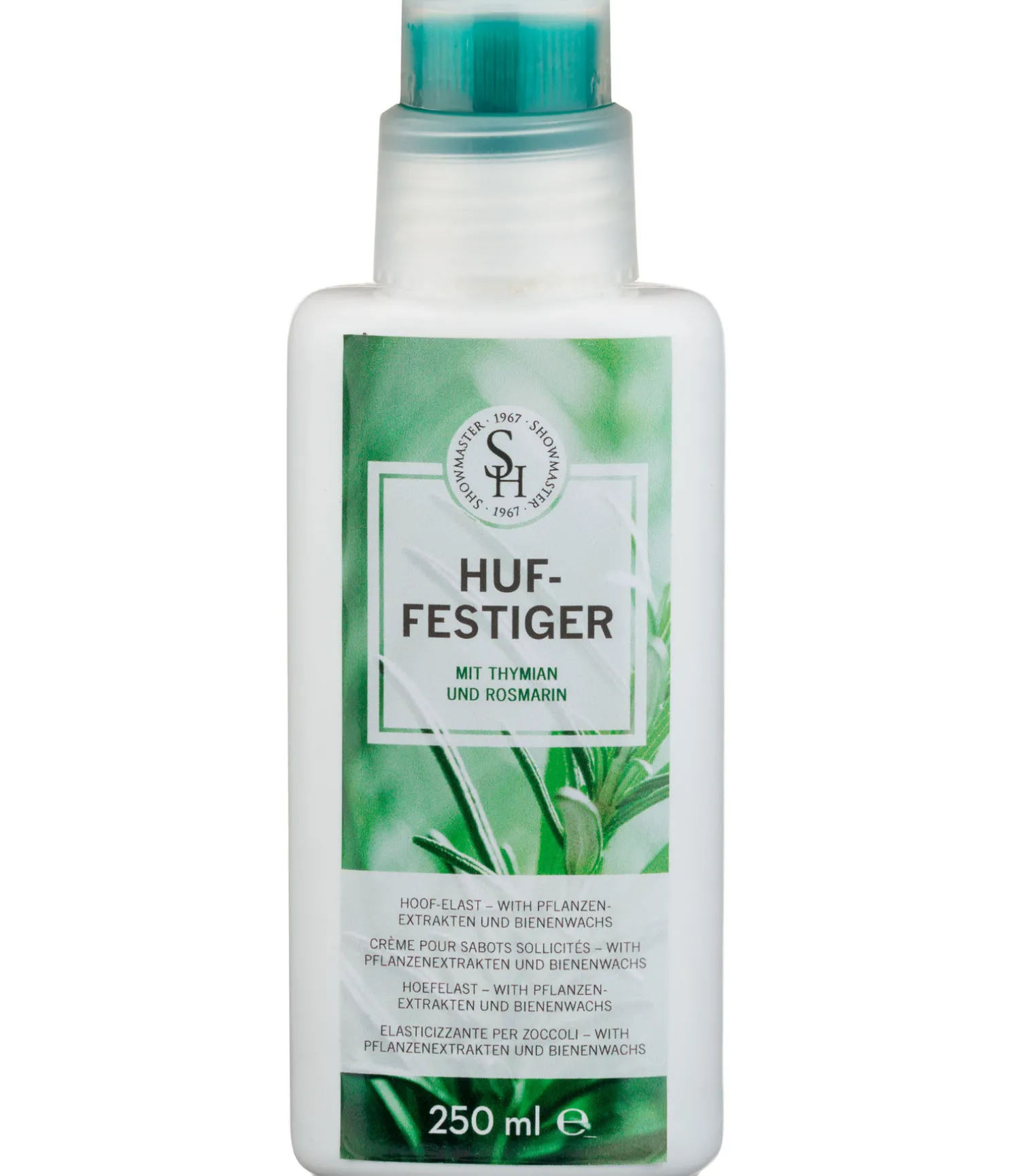 Le soin durcissant SHOWMASTER contient des ingrédients de grande qualité tels que le thym, la menthe poivrée et l’extrait de romarin. Ces produits d’origine végétale entretiennent et renforcent les tissus constituant les sabots des chevaux et sont donc parfaitement adaptés pour un soin intensif. Ils apportent au sabot tous les nutriments importants et créent un film protecteur qui permet de tenir à l’écart les bactéries et germes. Contient également des dérivés du zinc de grande qualité, qui accélèrent la régénération de la peau et des tissus constituant le sabot et sont adaptés au pH naturel des sabots des chevaux. Le soin durcissant pour sabots SHOWMASTER favorise la guérison et permet une croissance saine de la peau et des tissus constituant le sabot. Application facile grâce au pinceau fixé au capuchon.