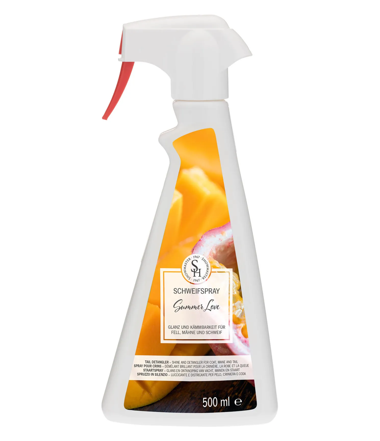 Spray à crins au parfum frais et fruité de mangue et de fruit de la passion pour le soin de la crinière, de la queue et de la robe. Les crins sont plus faciles à brosser et parfaitement démêlés. Confère à la robe une brillance soyeuse et une plus longue protection contre la poussière. Pendant la période d’effet du produit, la crinière et la robe du cheval restent brillantes et soignées. Un lavage préalable n’est pas nécessaire, le démêlage de la crinière et de la queue se fait immédiatement après pulvérisation du produit. En outre, la perte de crins lors du démêlage est réduite de manière significative. Une fois secs, les restes de sueur et les tâches d’urine ou d’herbe disparaissent facilement avec le brossage.