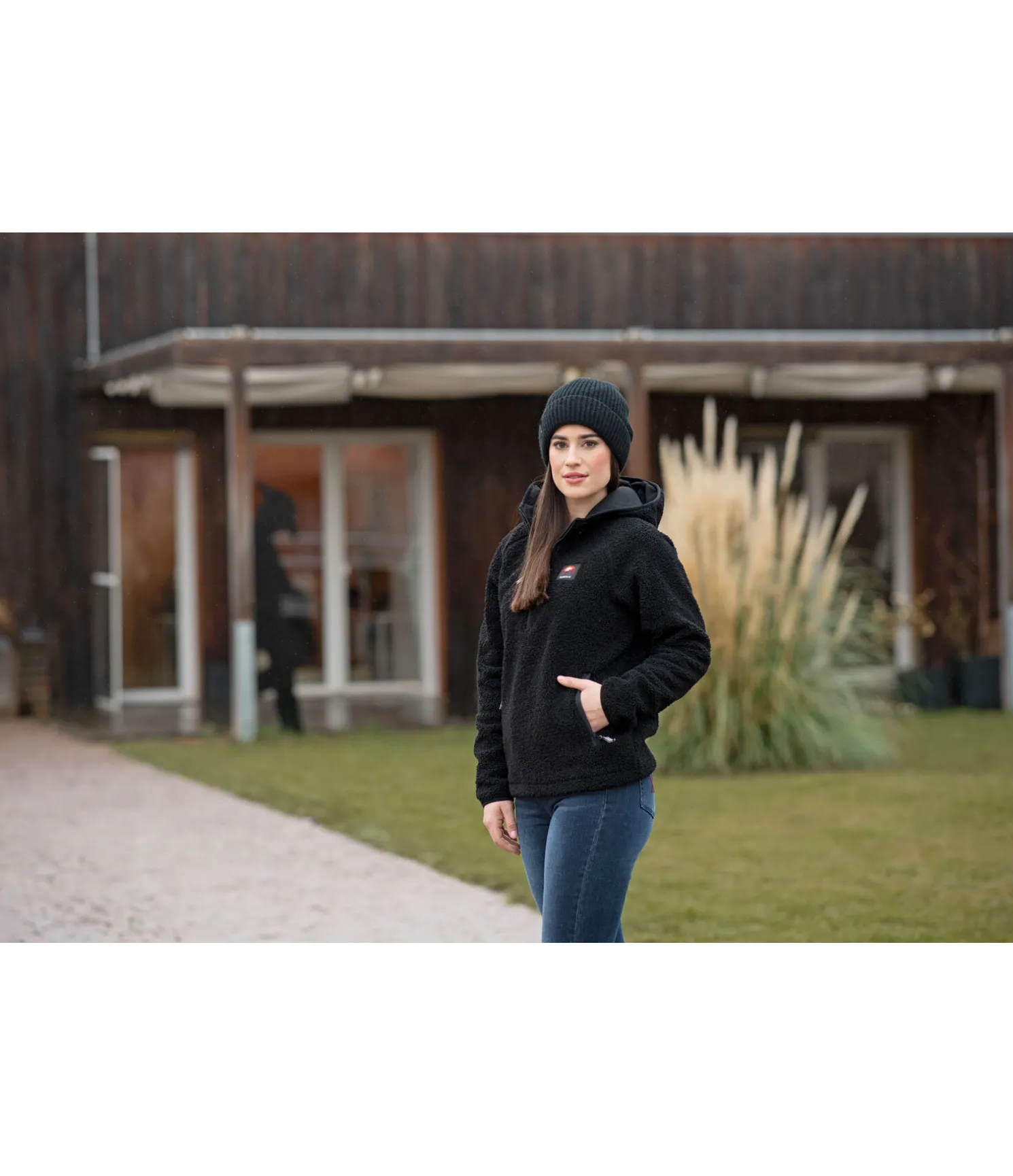 Sweat à capuche en sherpa. Matière chaude et respirante. Col zippé. 2 poches latérales zippées. Taille ajustable. Coupe-vent. 100 % polyester.