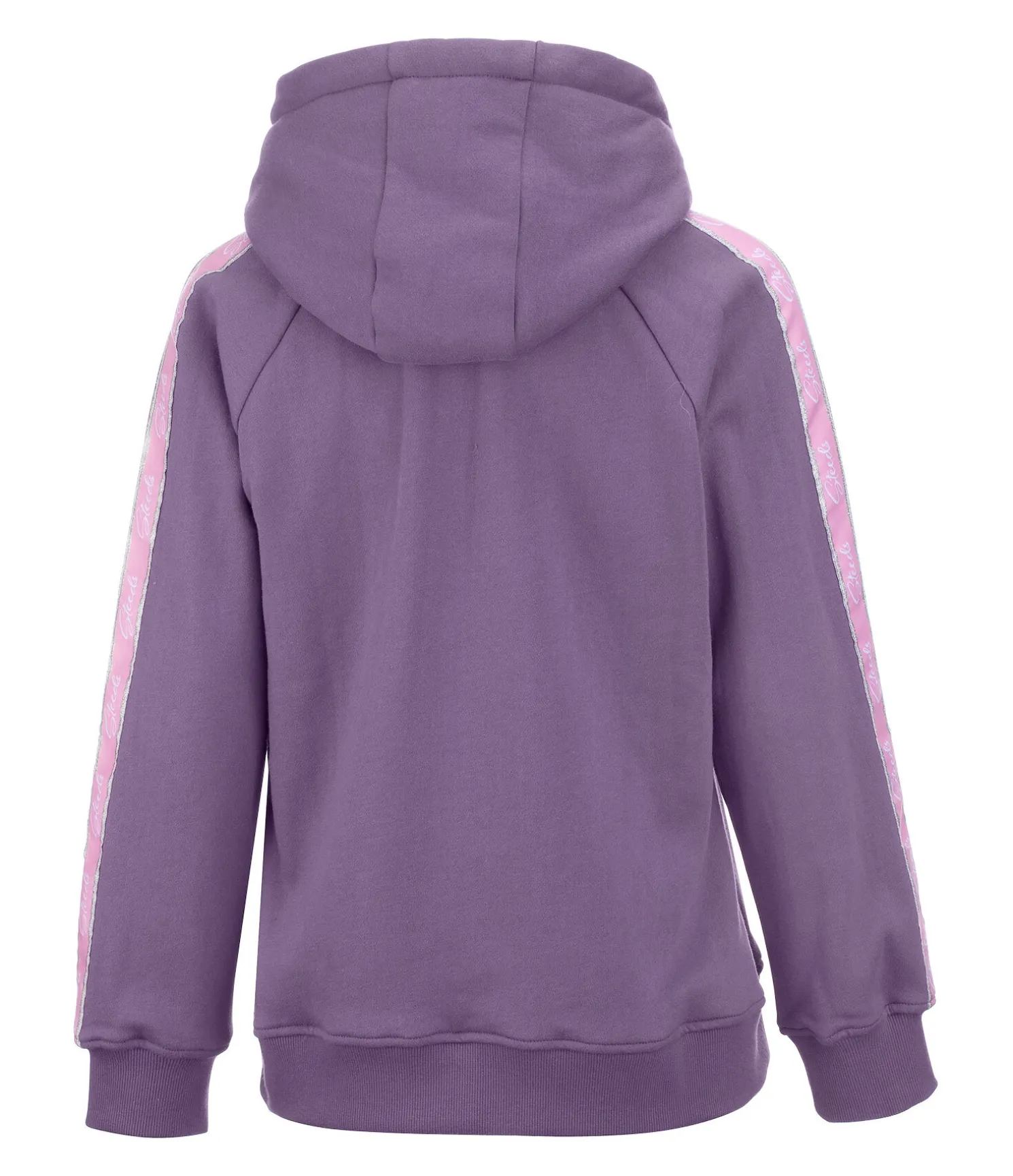 Sweat à capuche avec imprimé cheval en relief scintillant dans les couleurs de l’arc-en-ciel. Insert sur les manches de couleur contrastante avec logo et bord scintillant. Intérieur molletonné doux. Capuche réglable par cordon de serrage. Poche kangourou. Finition en bord-côte sur le bas des manches et l’ourlet. 65 % polyester, 35 % coton.